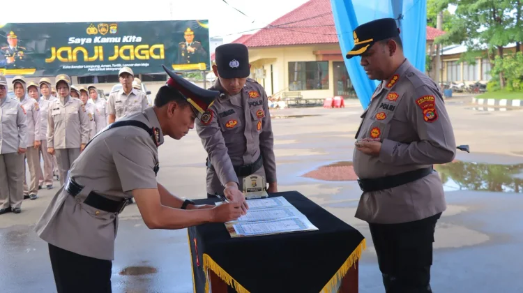 RRI.CO.ID, Bandar Lampung: Kapolresta Bandar Lampung, Kombes Pol Alfret Jacob Tilukay, memimpin upacara serah terima jabatan (sertijab) Kapolsek Panjang yang digelar di lapangan apel Mapolresta Bandar Lampung, Rabu (11/3/2026) pagi.