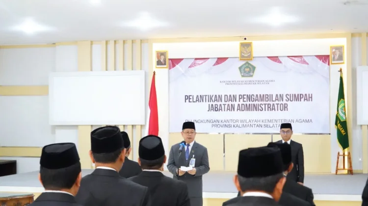 RRI.CO.ID, Banjarmasin - Kepala Kantor Wilayah Kementrian Agama Provinsi Kalimantan Selatan, Dr. H. Muhammad Tambrin, M.M.Pd., melantik seorang pejabat administrator di lingkunyan Kanwil Kemenag Kalsel. Pelantikan ini merupakan bagian dari upaya penguatan tata kelola organisasi serta peningkatan kualitas pelayanan keagamaan di daerah. Senin, 2 Maret 2026.