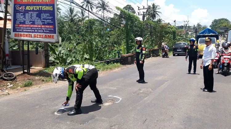 Polisi Tandai Jalan Berlubang Jalur Mudik Pandeglang