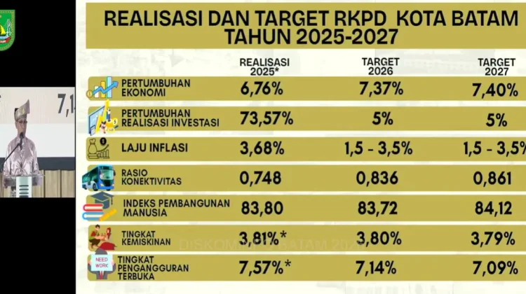RRI.CO.ID, Batam - Kepala Bappeda Kota Batam Tri Wahyu Rubianto menyebutkan pertumbuhan ekonomi Batam menunjukkan kinerja yang cukup baik dalam beberapa tahun terakhir. Pemerintah Kota Batam menargetkan pertumbuhan ekonomi daerah terus meningkat hingga tahun 2027. Target tersebut disampaikan dalam Musrenbang RKPD tingkat Kota Batam tahun 2026.