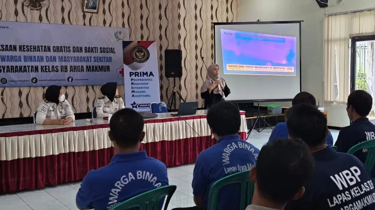 RRI.CO.ID, Arga Makmur — Dalam upaya meningkatkan kesadaran akan pentingnya menjaga kesehatan dan kebersihan lingkungan, Lembaga Pemasyarakatan (Lapas) Kelas IIB Arga Makmur menggelar kegiatan penyuluhan kesehatan mengenai pencegahan penyakit Demam Berdarah Dengue (DBD) bagi Warga Binaan Pemasyarakatan (WBP), Kamis 12 Maret 2026. Kegiatan ini dilaksanakan di Aula Lapas Kelas IIB Arga Makmur dan menghadirkan dr. Setiowati sebagai narasumber.