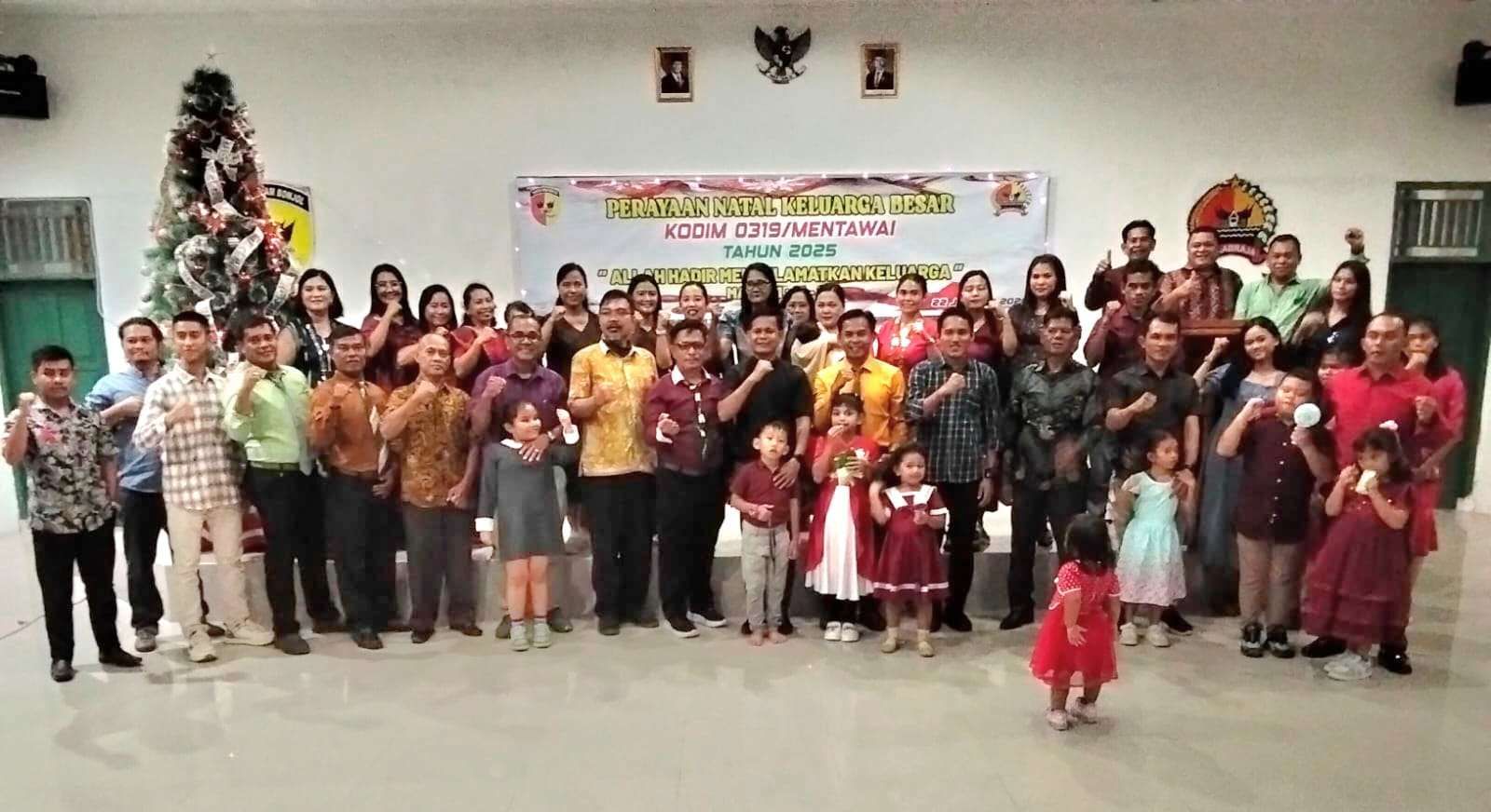 RR.CO.ID,Kab. Mentawai - Dandim 0319/Mentawai Letkol Inf Bambang Budi Hartanto didampingi istri tercinta Ketua Persit Kartika Chandra Kirana Cabang LXXIV Dim 0319 Koorcab Rem 032 PD XX TIB Ny. Syifa Bambang hadiri Perayaan Natal Tahun 2025 Keluarga Besar Kodim 0319/Mentawai di Aula Makodim 0319/Mentawai yang diselenggarakan Kamis, 22 Januari 2026.