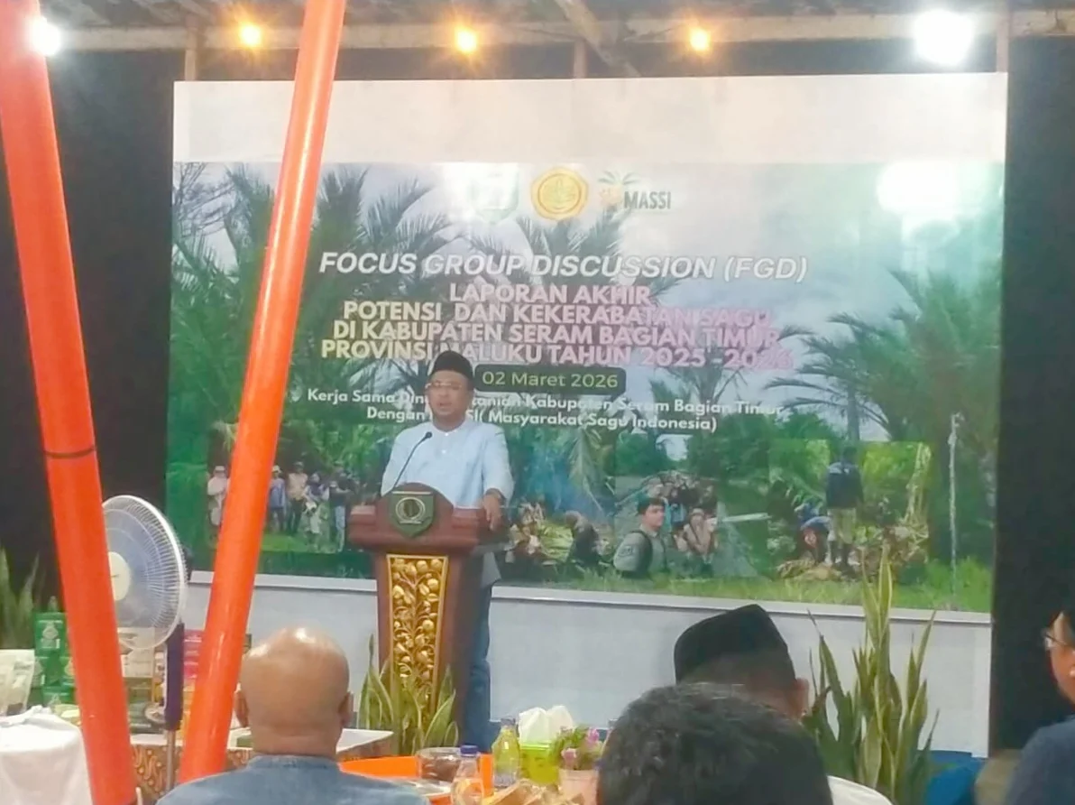 Hal itu disampaikannya saat membuka Fokus Grup Discussion (FGD) Laporan Akhir Potensi dan Kekerabatan Sagu di Kabupaten Seram Bagian Timur yang digelar di Pujasera Pantai Wailola, Kota Bula, Senin malam, 2 Maret 2026.