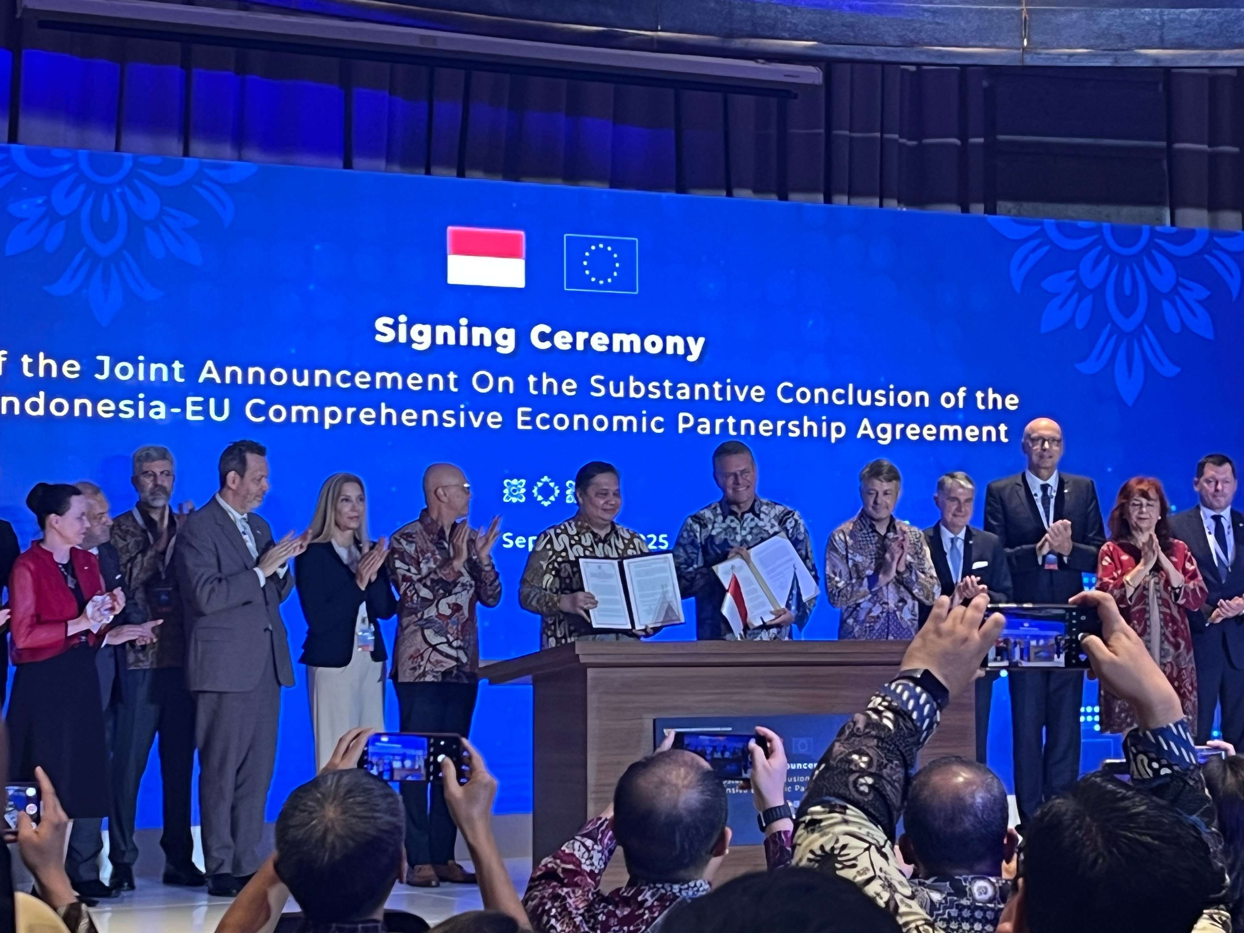 KBRN, Badung: Pemerintah Indonesia bersama Uni Eropa secara resmi mengumumkan tercapainya substantive conclusion dari perundingan Comprehensive Economic Partnership Agreement (IEU-CEPA), sebuah tonggak penting dalam diplomasi ekonomi internasional. Kesepakatan ini menandai berakhirnya proses negosiasi panjang yang berlangsung sejak 2016 dan membuka jalan menuju fase penandatanganan serta ratifikasi. Menteri Koordinator Bidang Perekonomian Indonesia, Airlangga Hartarto di Nusa Dua kemarin menyampaikan, target perjanjian ini efektif mulai dari 1 Januari 2027. IEU-CEPA merupakan instrumen kerja sama ekonomi komprehensif yang mencakup aspek perdagangan.