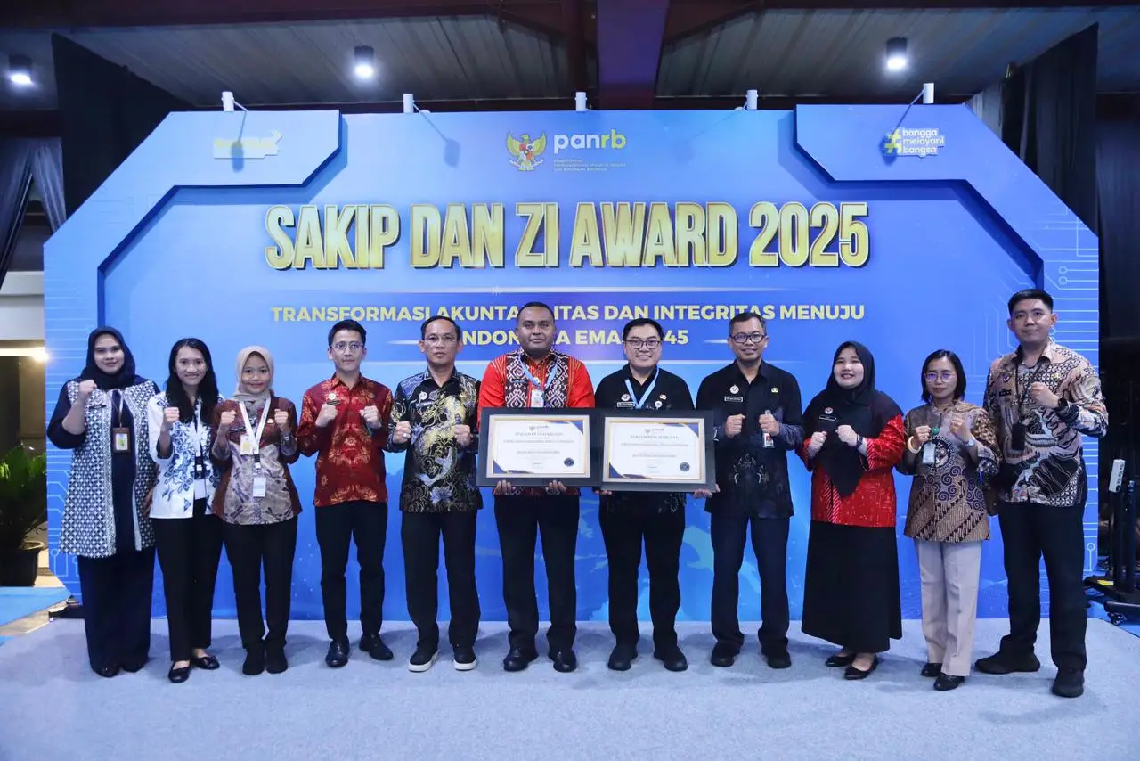 Kepala PLBN Entikong , Teguh Priyadi (kelima dari kanan) saat menerima penghargaan pada Kamis, 19 Februari 2026. (Foto: Dok. BNPP).