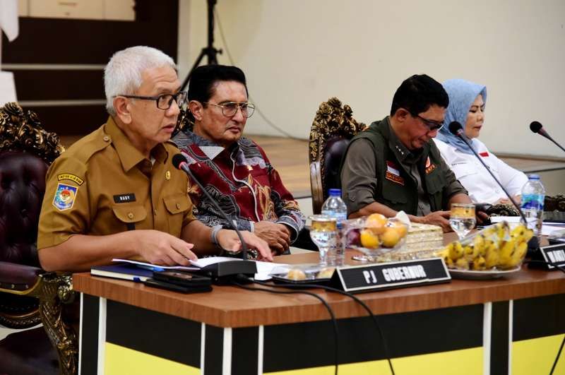 KBRN, Gorontalo : Kunjungan Kepala BNPB ke Gorontalo dimanfaatkan oleh Penjabat Gubernur Gorontalo, Rudy Salahuddin untuk memaparkan langkah yang telah diambil pemerintah daerah dalam menangani bencana alam banjir, banjir bandang, dan tanah longsor, Selasa (16/7/2024). Rapat koordinasi membahas upaya penanganan bencana alam yang merupakan tindak lanjut dari penetapan status tanggap darurat.