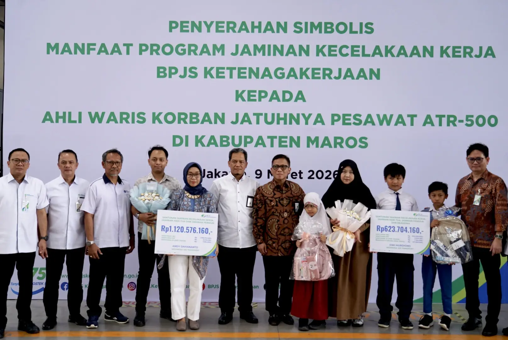 RRI.CO.ID, Jakarta - BPJS Ketenagakerjaan menyerahkan santunan secara simbolis sebesar Rp1,7 miliar kepada ahli waris korban kecelakaan pesawat ATR 42-500 milik Indonesia Air Transport (IAT) yang jatuh di kawasan Pegunungan Bulusaraung, Kabupaten Maros, Sulawesi Selatan beberapa waktu lalu.