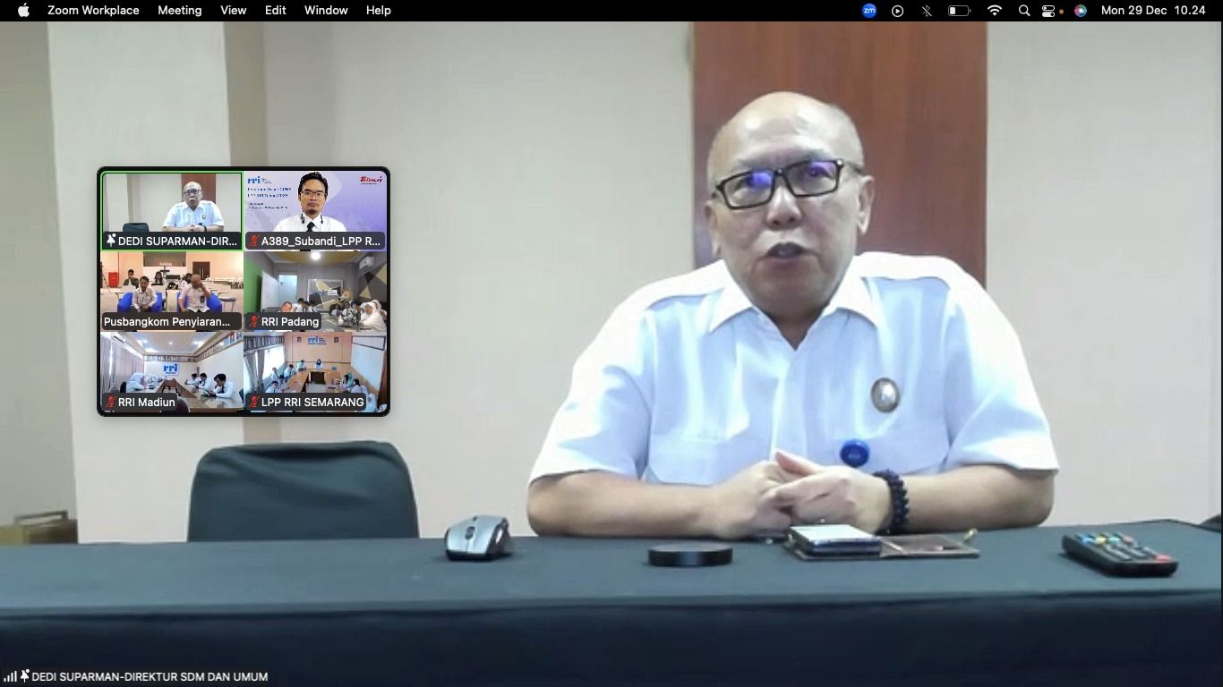 Direktur SMD RRI Dedi Suparman Saat menyampaikan Sabutannya via Zoom saat Penutupan Latsar CPNS LPP RRI (RRI)