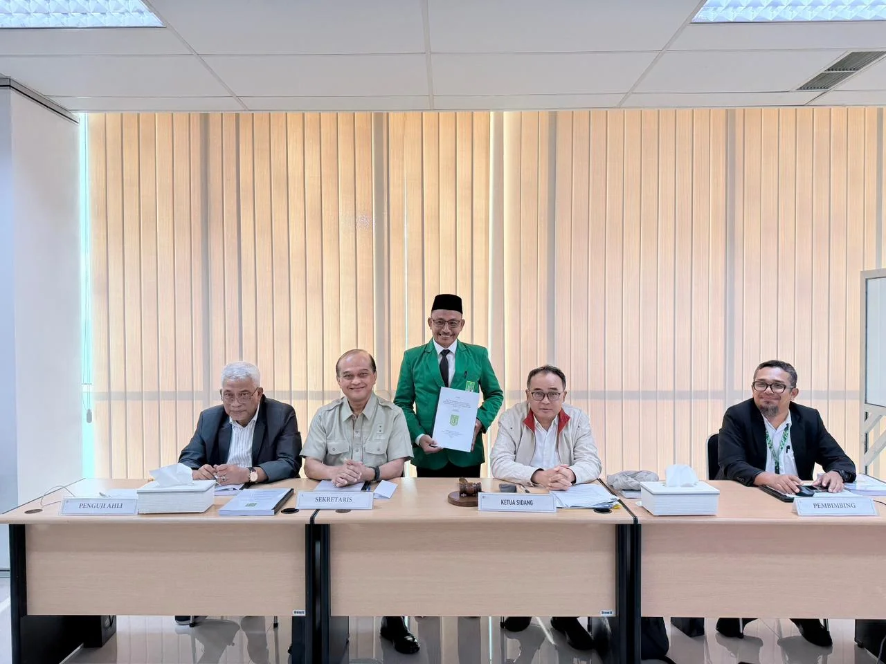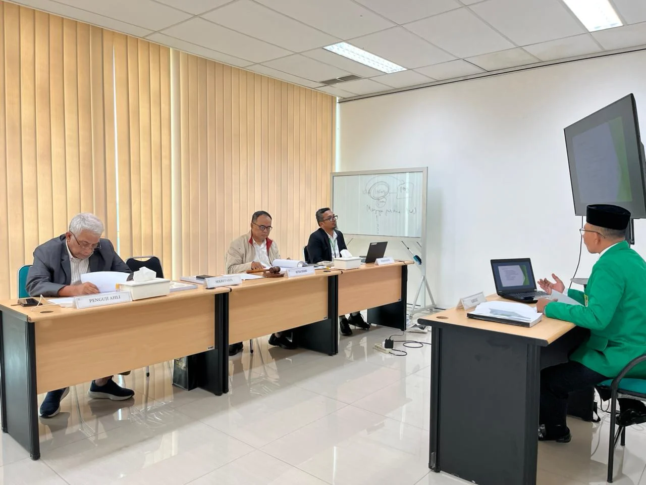 Sementara sidang tesis tersebut turut dihadiri dosen pembimbing dan penguji, yakni Prof. Ganjar Razuni, Dr. T.B. Massa Djafar, serta Dr. Sahruddin selaku pembimbing. Setelah melalui sesi tanya jawab dan revisi minor, Haji Uma dinyatakan lulus dengan predikat sangat memuaskan.