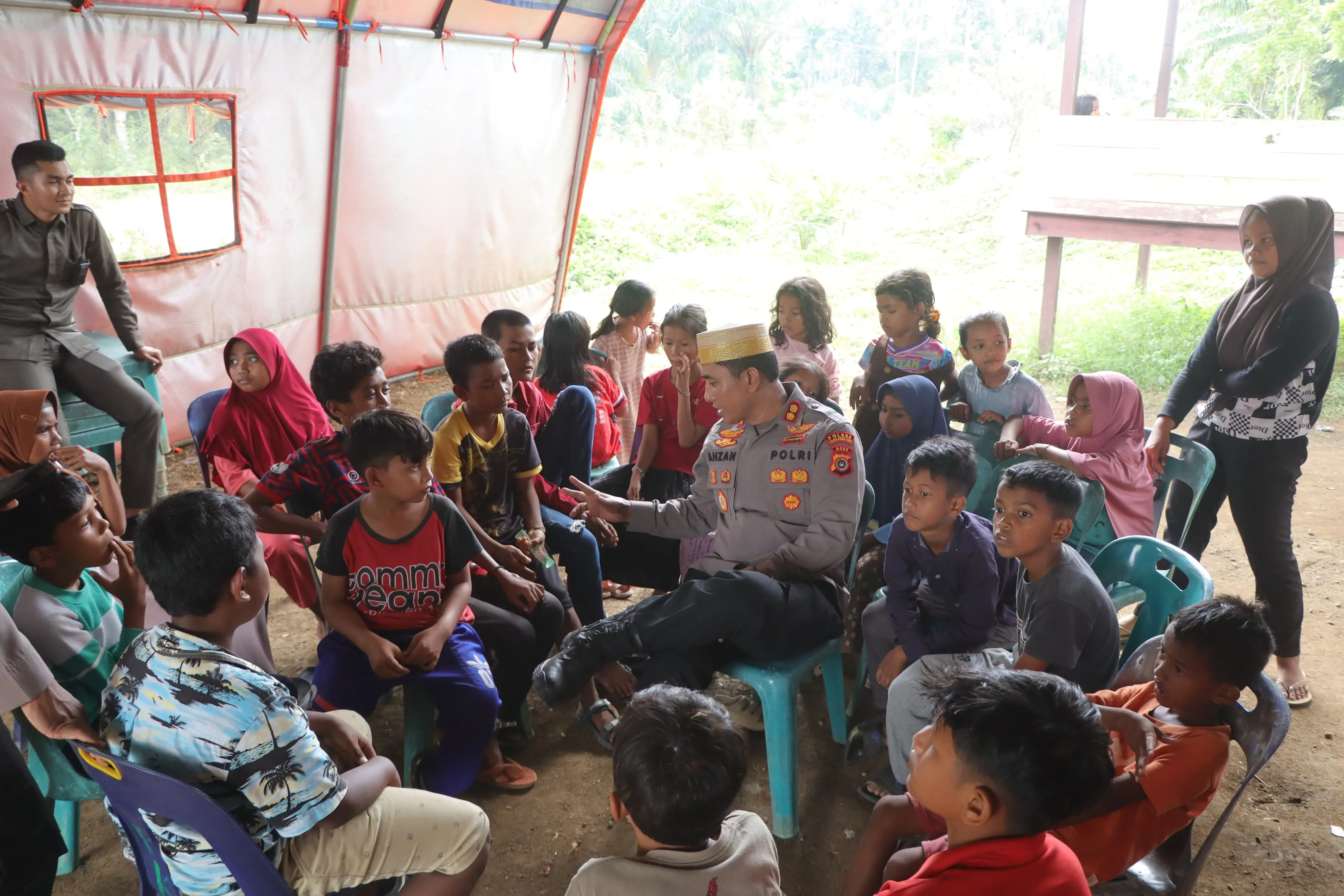Dengan suasana santai dan penuh keakraban, Kapolres mengajak anak-anak bercengkerama dan memberikan semangat. Canda dan tawa pun pecah di tengah lokasi pengungsian, menghadirkan keceriaan bagi anak-anak yang sebelumnya tampak murung akibat musibah banjir.