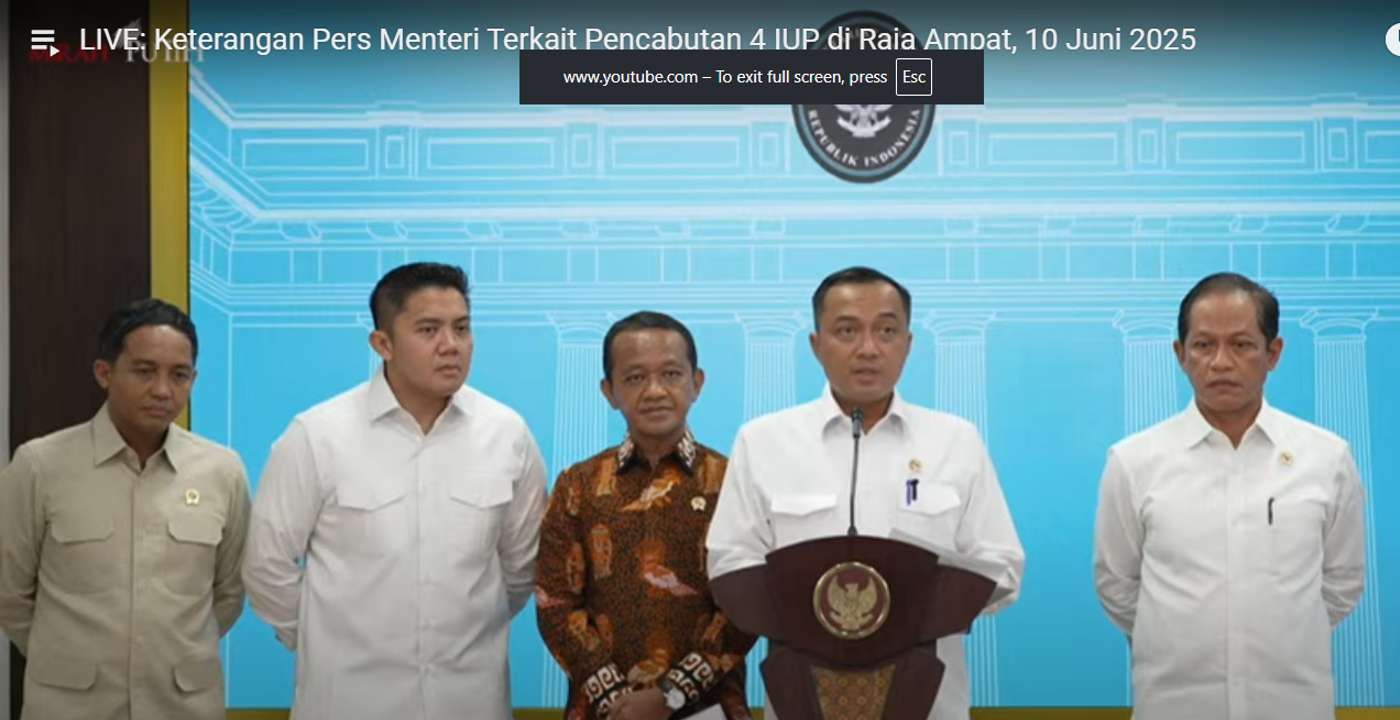 KBRN, Jakarta: Presiden Prabowo Subianto mencabut empat Izin Usaha Pertambangan (IUP) di Kabupaten Raja Ampat yang menjadi polemik akhir-akhir ini. Hal tersebut sejalan dengan Perpres RI nomor 5 tahun 2025 tentang penertiban kawasan hutan.