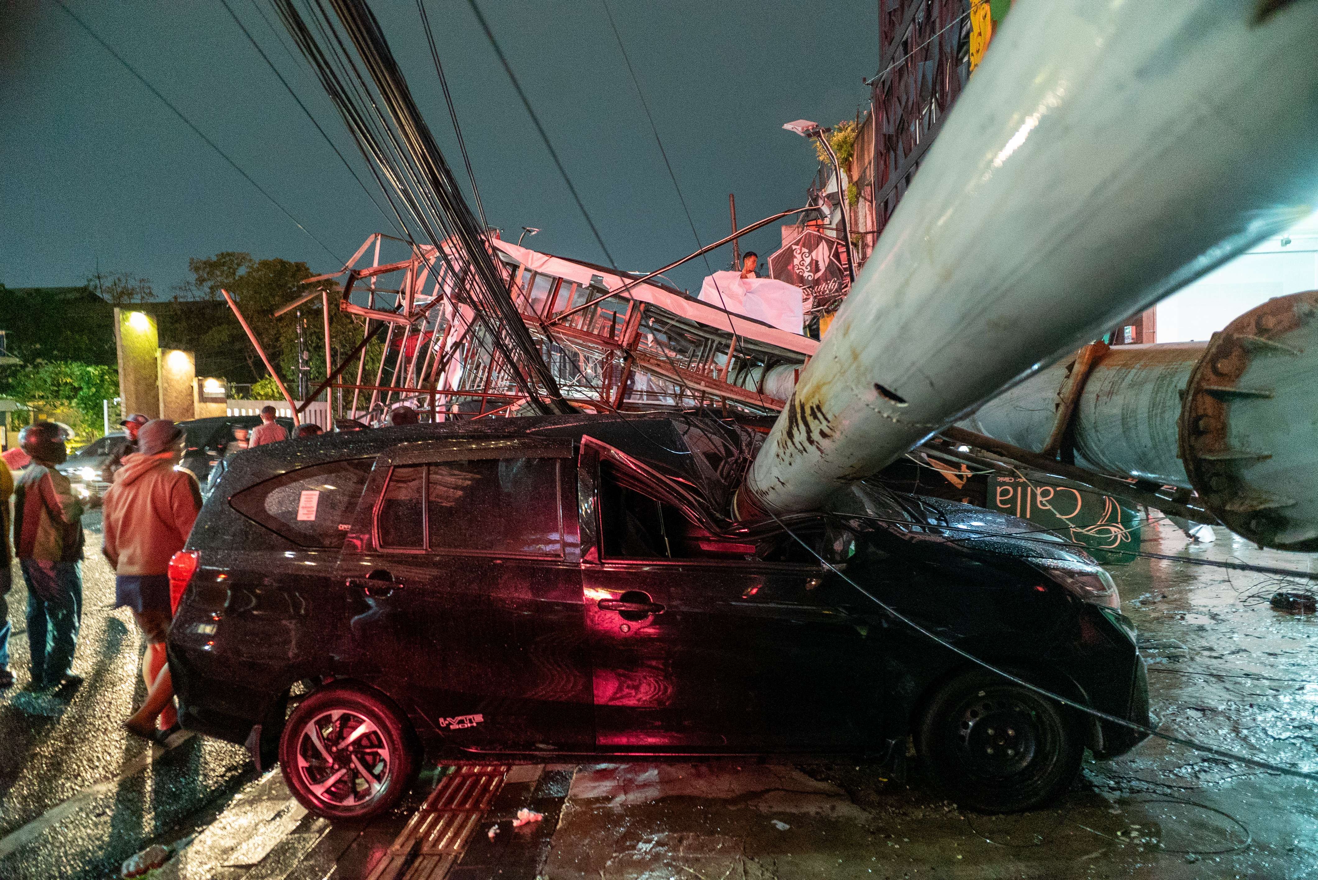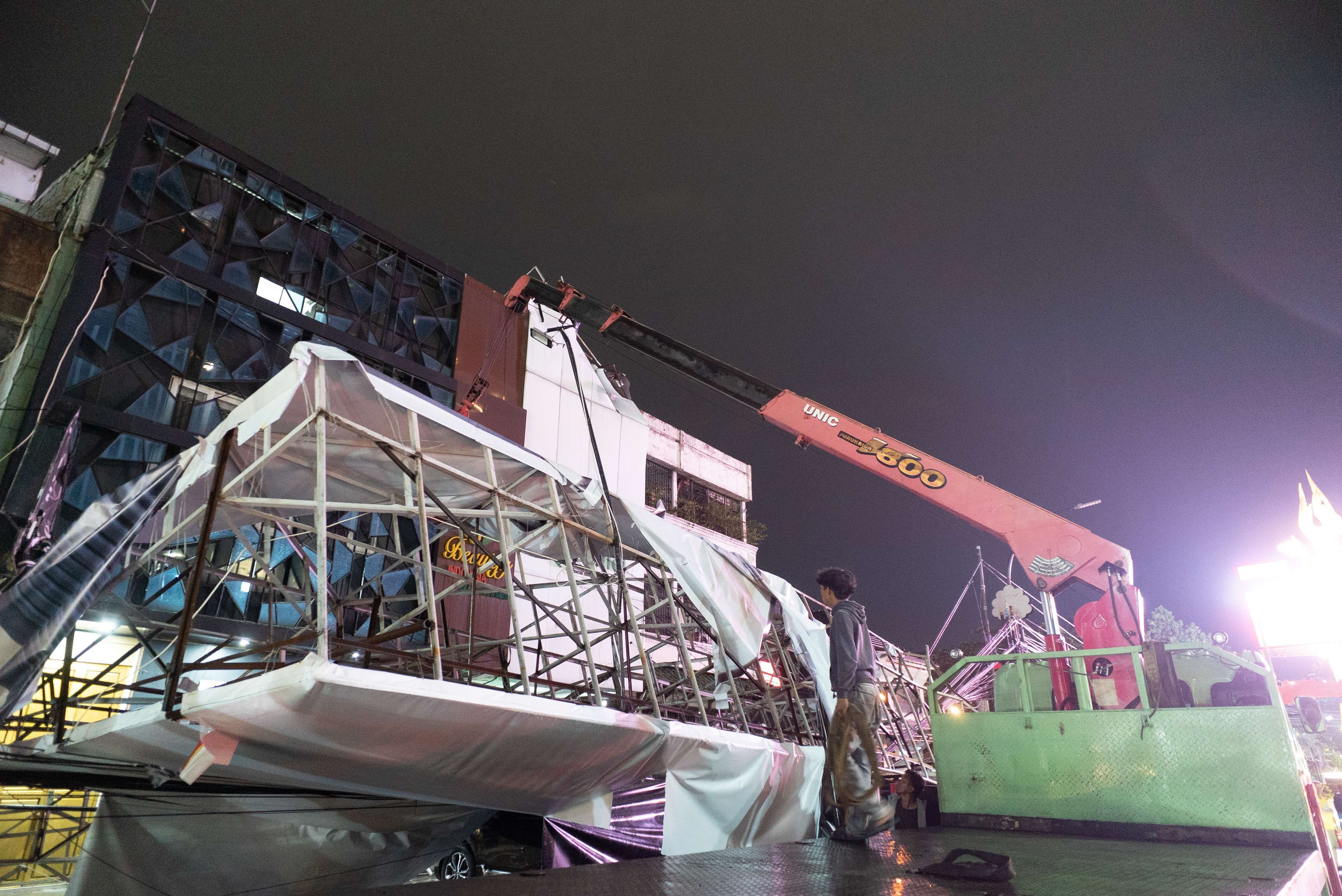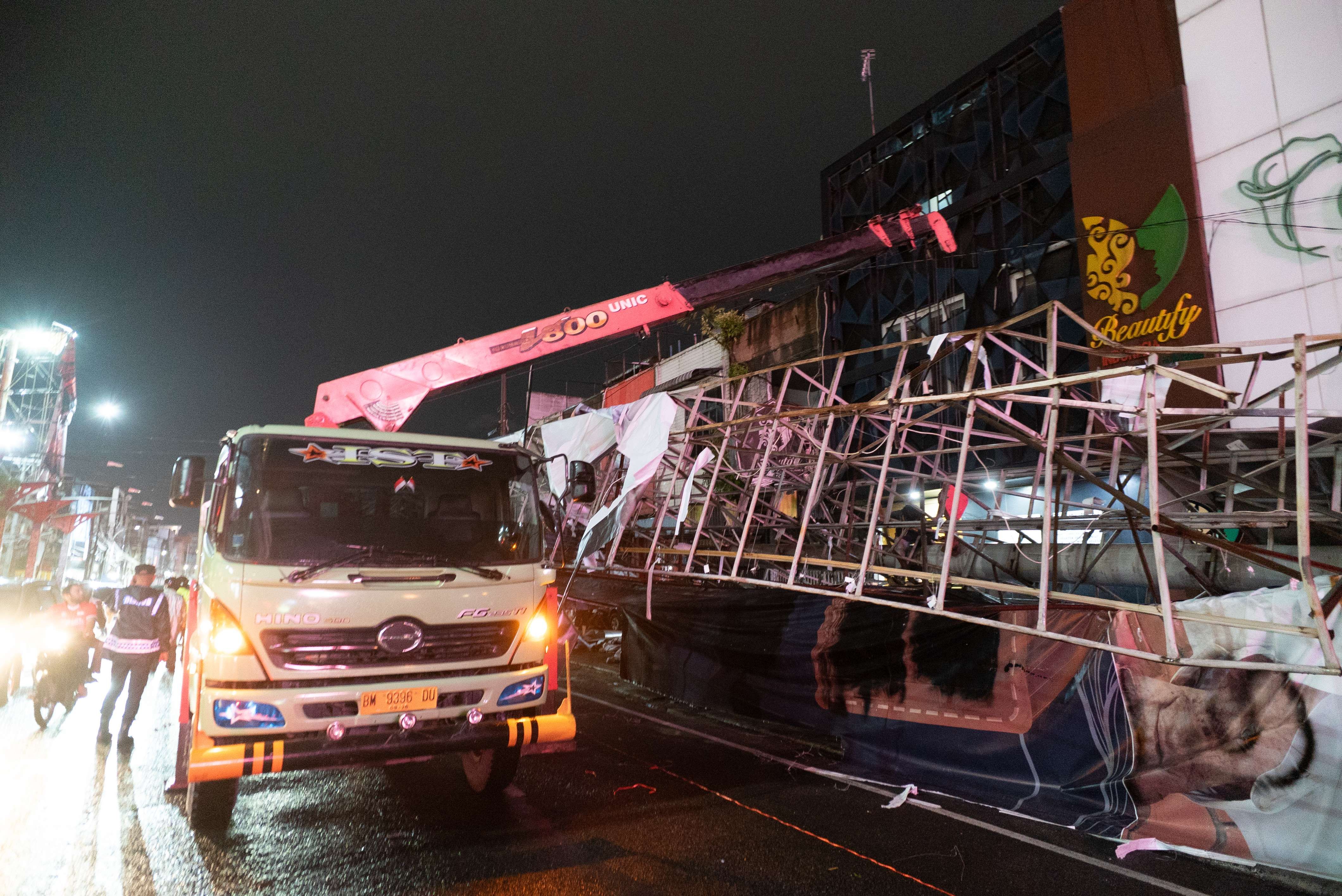 KBRN, Medan: Hujan deras disertai angin kencang yang melanda Kota Medan pada Selasa (12/8) sekitar pukul 7 malam menyebabkan sebuah billboard di Jalan Zainul Arifin, sebelum simpang Jalan S. Parman, tumbang. Billboard tersebut roboh dan menimpa beberapa mobil serta ruko di kawasan tersebut.Camat Medan Baru menyampaikan, sedikitnya tiga mobil tertimpa dan satu orang luka dalam insiden ini. petugas masih melakukan evakuasi dan pendataan kerugian. (Foto: RRI/AanTurnip)