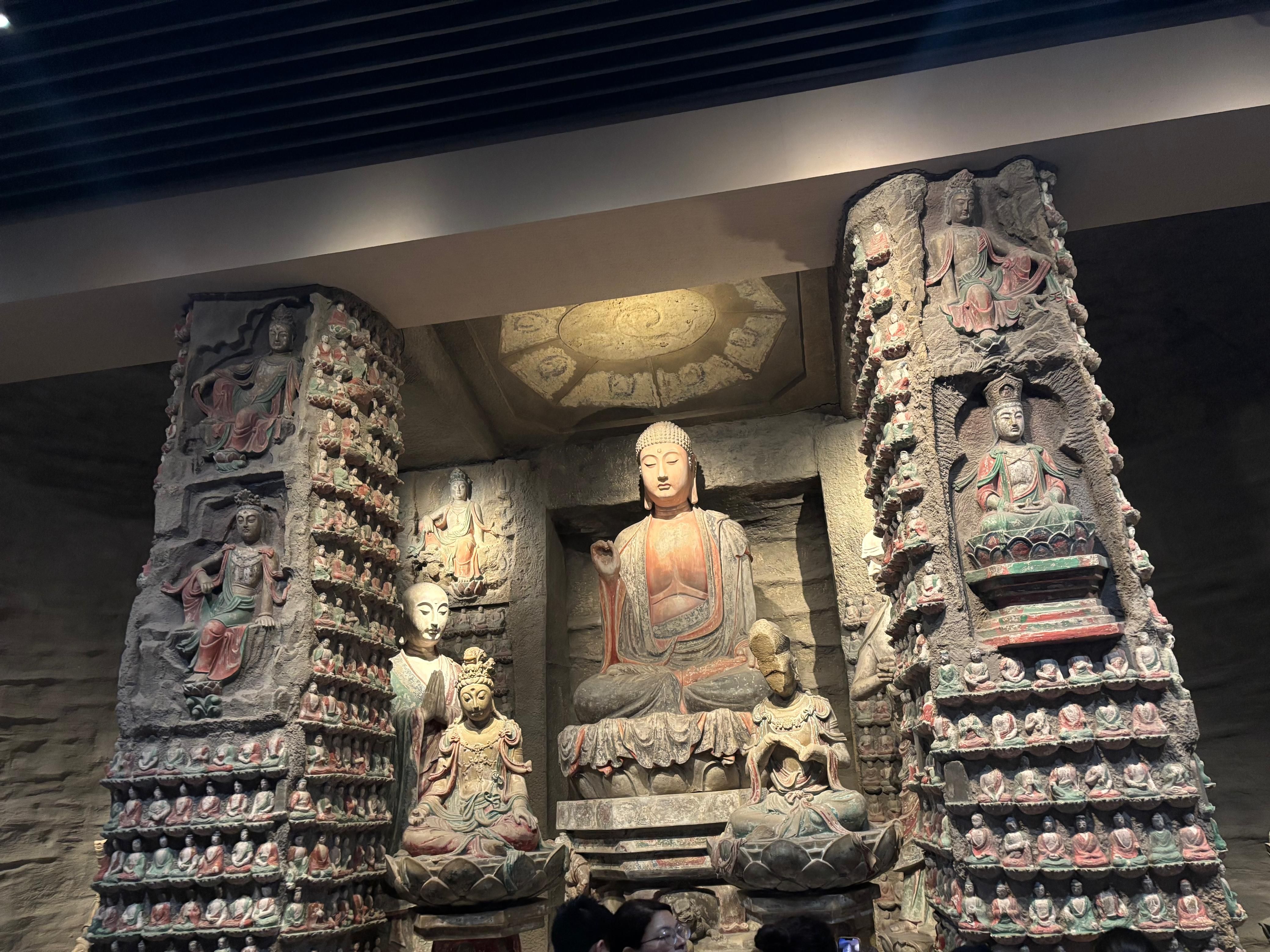 Replika gua Buddha dengan deretan patung berornamen warna-warni yang merepresentasikan warisan seni religi di Museum Sejarah Shaanxi, Xi’an. (Foto: RRI/Mario Pascal)
