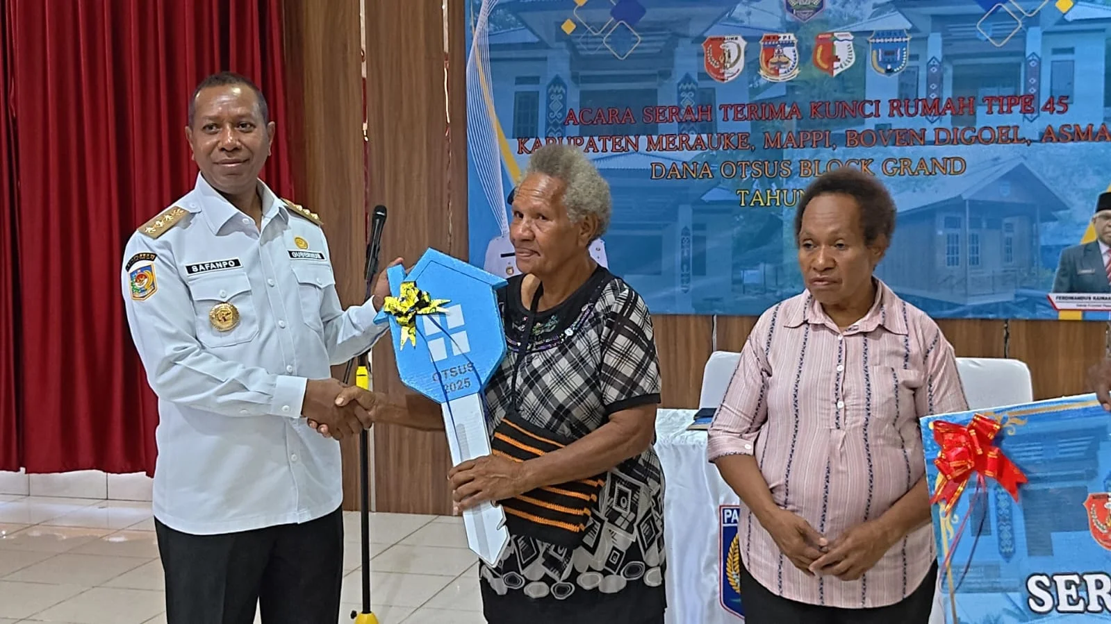 RRI.CO.ID, Merauke -Pemerintah Provinsi Papua Selatan melalui dinas Pekerjaan Umum dan Perumahan Rakyat menyerahkan kunci rumah tipe 45 kepada Masyarakat Orang Asli Papua (OAP) yang tersebar di Empat (4) Kabupaten cakupan diwilayah setempat yaitu Kabupaten Merauke, Mappi, Boven Digoel dan Asmat melalui dana Otonomi Khusus (Otsus) Block Grand tahun 2025.