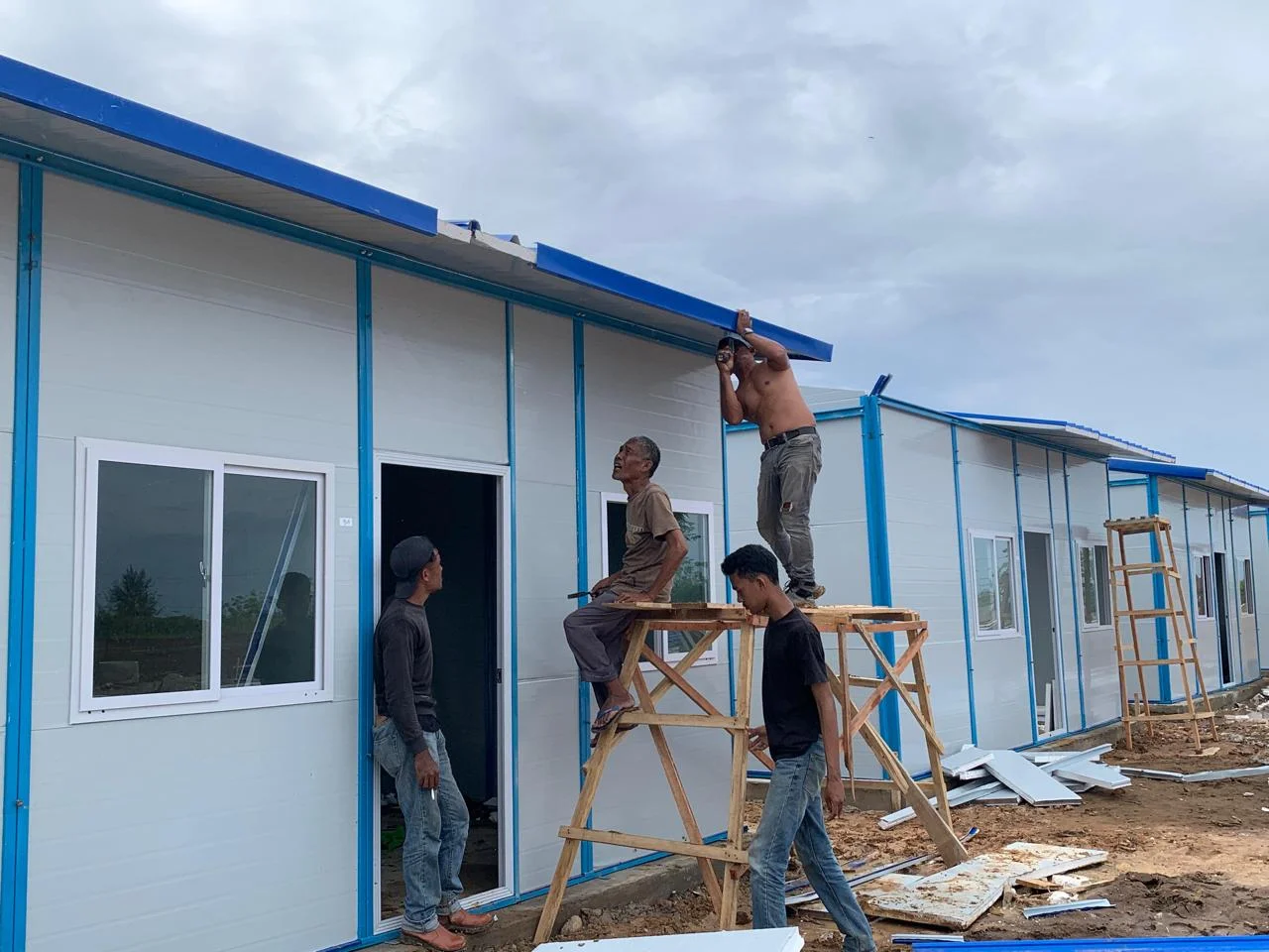 Hunian tetap ini dibangun menggunakan struktur, dinding, dan atap berbahan baja galvanis. Bahan tersebut tahan karat sekaligus memiliki ketahanan terhadap gempa.