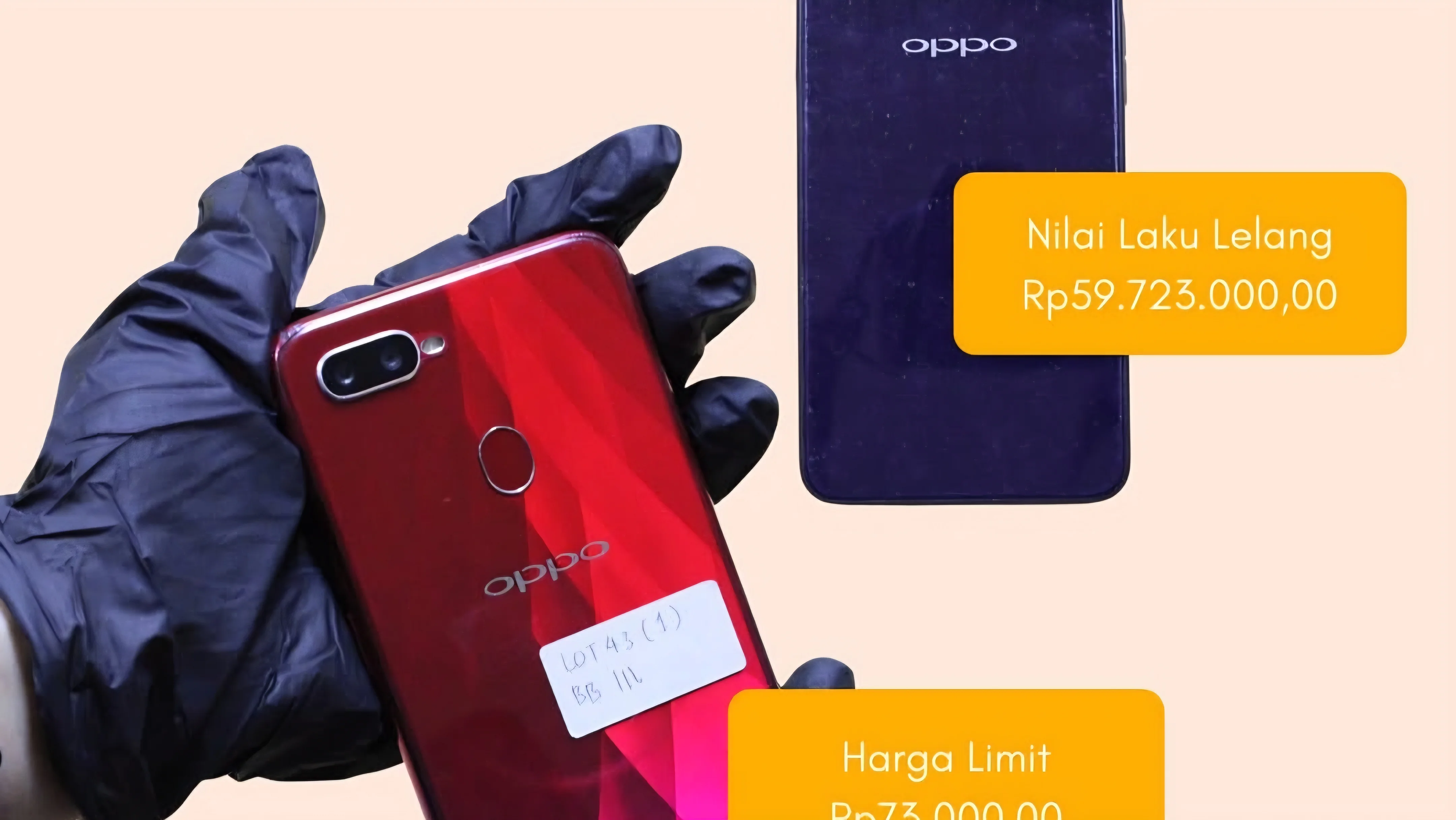 “HP Oppo F9 dan Oppo warna hitam yang kemarin dilelang dan laku di harga Rp59 juta. Disita dari Sekda Tanjungbalai Yusmada dalam perkara M. Syahrial,” kata Mungki.