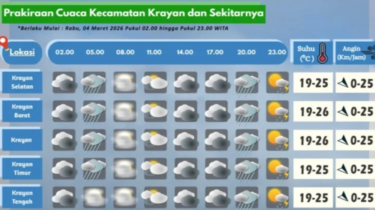 RRI.CO.ID, Nunukan: Badan Meteorologi, Klimatologi dan Geofisika Stamet Yuvai Semaring merilis prakiraan cuaca pada Rabu (4/3/2026).