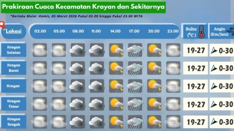 RRI.CO.ID, Nunukan: Badan Meteorologi, Klimatologi dan Geofisika Stamet Yuvai Semaring merilis prakiraan cuaca pada Kamis (5/3/2026).