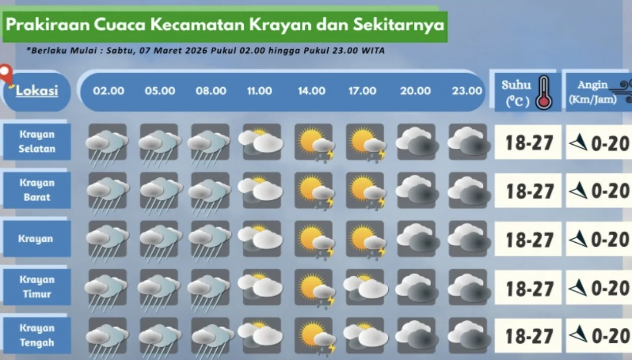 RRI.CO.ID, Nunukan: Badan Meteorologi, Klimatologi dan Geofisika Stamet Yuvai Semaring merilis prakiraan cuaca pada Sabtu (7/3/2026).