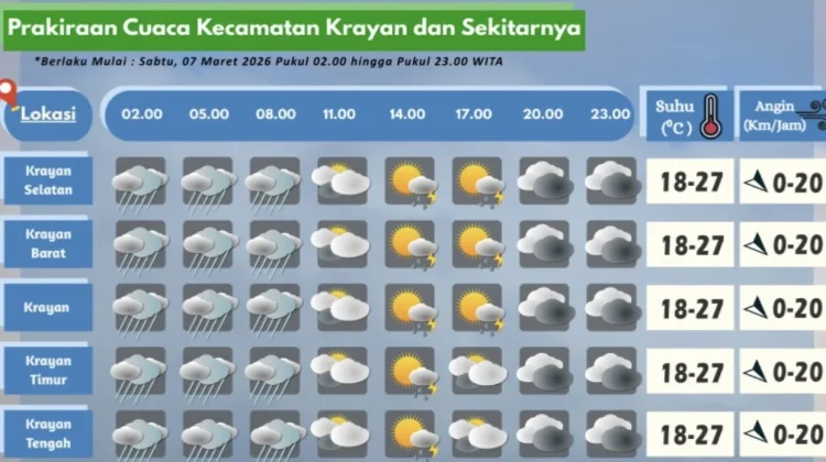 RRI.CO.ID, Nunukan: Badan Meteorologi, Klimatologi dan Geofisika Stamet Yuvai Semaring merilis prakiraan cuaca pada Sabtu (7/3/2026).