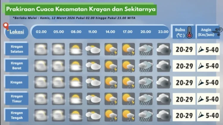 RRI.CO.ID, Nunukan: Badan Meteorologi, Klimatologi dan Geofisika Stamet Yuvai Semaring merilis prakiraan cuaca pada Kamis (12/3/2026).