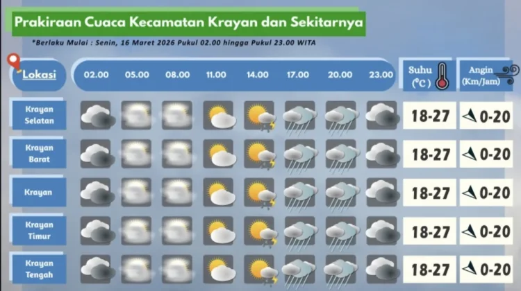 RRI.CO.ID, Nunukan: Badan Meteorologi, Klimatologi dan Geofisika Stamet Yuvai Semaring merilis prakiraan cuaca pada Senin (16/3/2026).