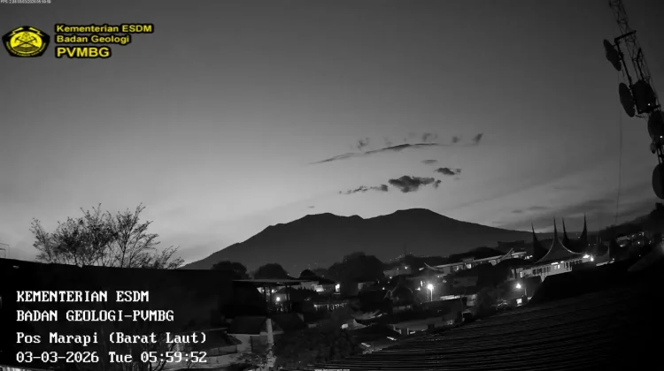 RRI.CO.ID, Padang - Gunung Marapi di Kabupaten Tanah Datar dan Kabupaten Agam kembali mengalami erupsi pada Selasa 3 Maret 2026 dini hari. Berdasarkan rilis Pusat Vulkanologi dan Mitigasi Bencana Geologi (PVMBG), erupsi terjadi pada pukul 02.19 WIB dan terekam seismograf dengan amplitudo 30,2 milimeter serta durasi sekitar 1 menit 25 detik.