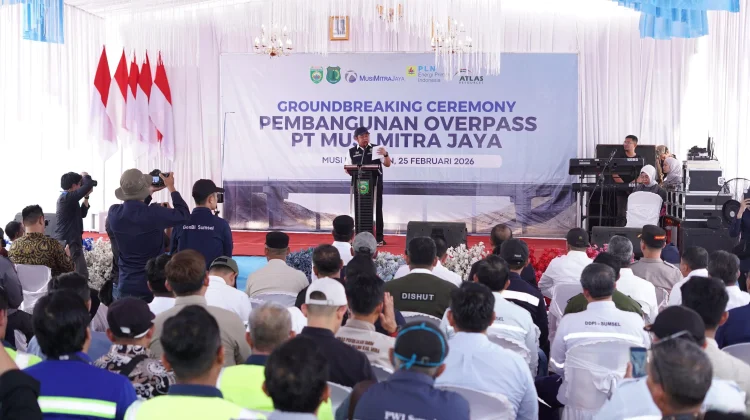 RRI.CO.ID, Musi Banyuasi - Gubernur Sumatera Selatan, Herman Deru melaksanakan groundbreaking pembangunan underpass jalan khusus angkutan batubara milik PT Musi Mitra Jaya di Desa Kali Berau, Bayung Lencir, Kabupaten Musi Banyuasin, Rabu, 25 Februari 2026.