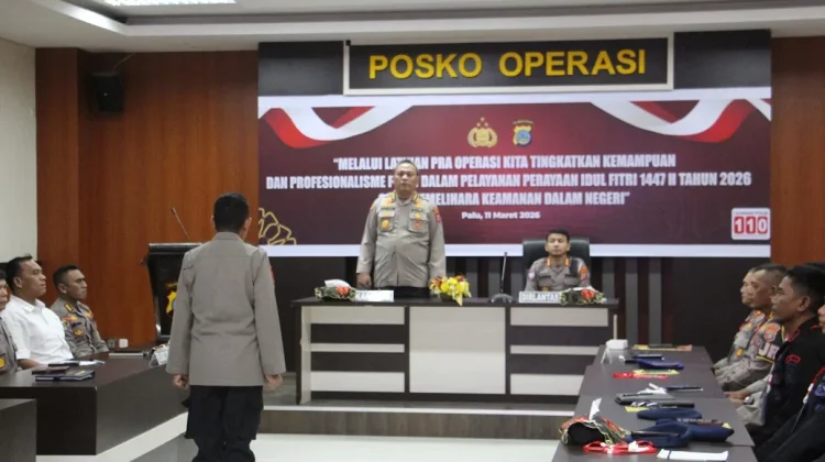 RRI.CO.ID, Palu - Menjelang perayaan Hari Raya Idul Fitri 1447 Hijriah tahun 2026, Kepolisian Daerah Sulawesi Tengah (Polda Sulteng) melalui Biro Operasi (Roops) menggelar kegiatan Latihan Pra Operasi (Latpraops) Ketupat Tinombala 2026, Rabu, 11 Maret 2026 sore, di Aula Rupatama Lantai 1 Polda Sulteng.