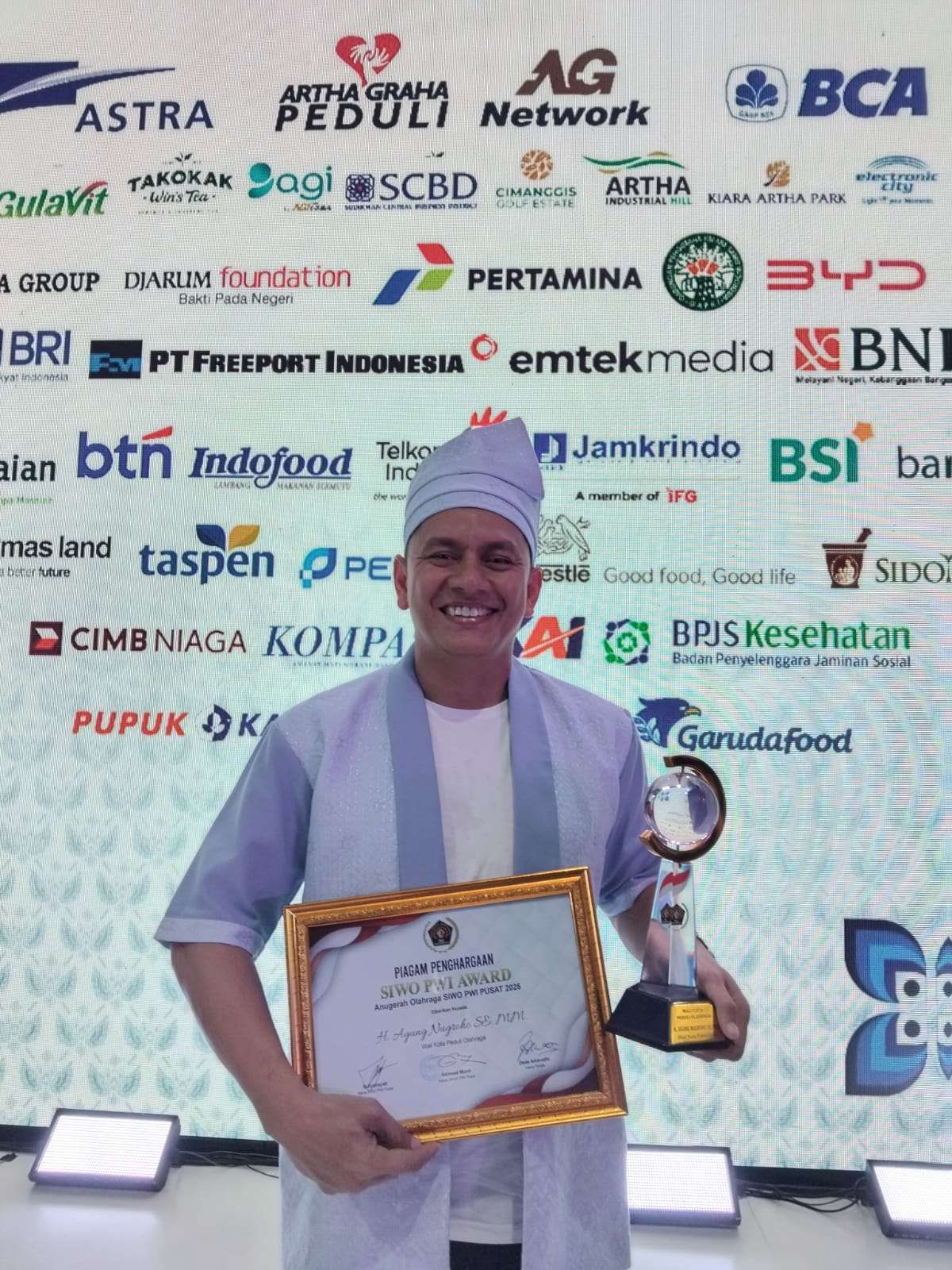 Penghargaan tersebut diberikan oleh Seksi Wartawan Olahraga (SIWO) PWI Pusat sebagai bentuk apresiasi terhadap komitmen kepala daerah dalam mendukung pembinaan atlet, penyediaan anggaran, serta pembangunan fasilitas olahraga yang berkelanjutan di daerah.
