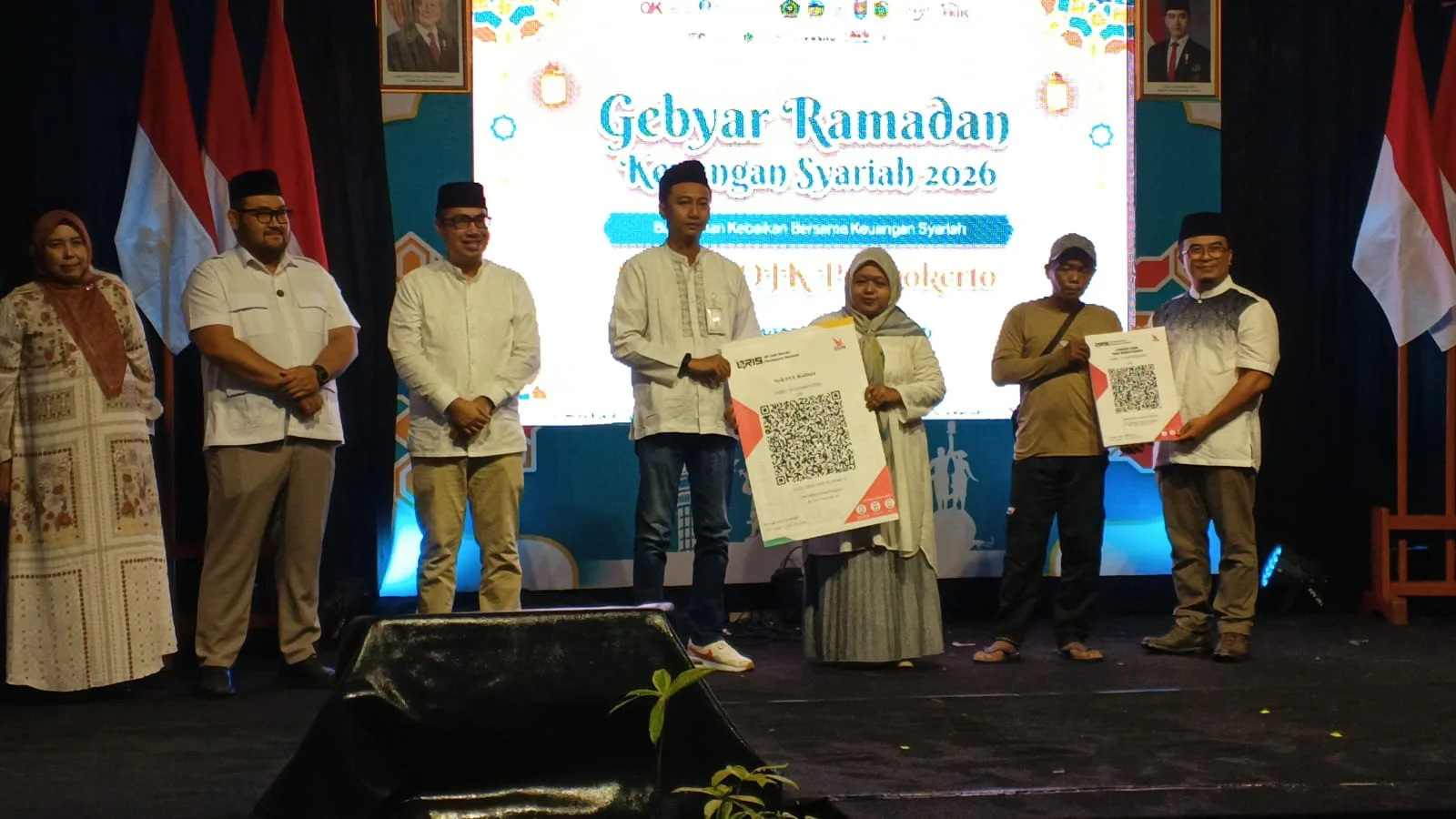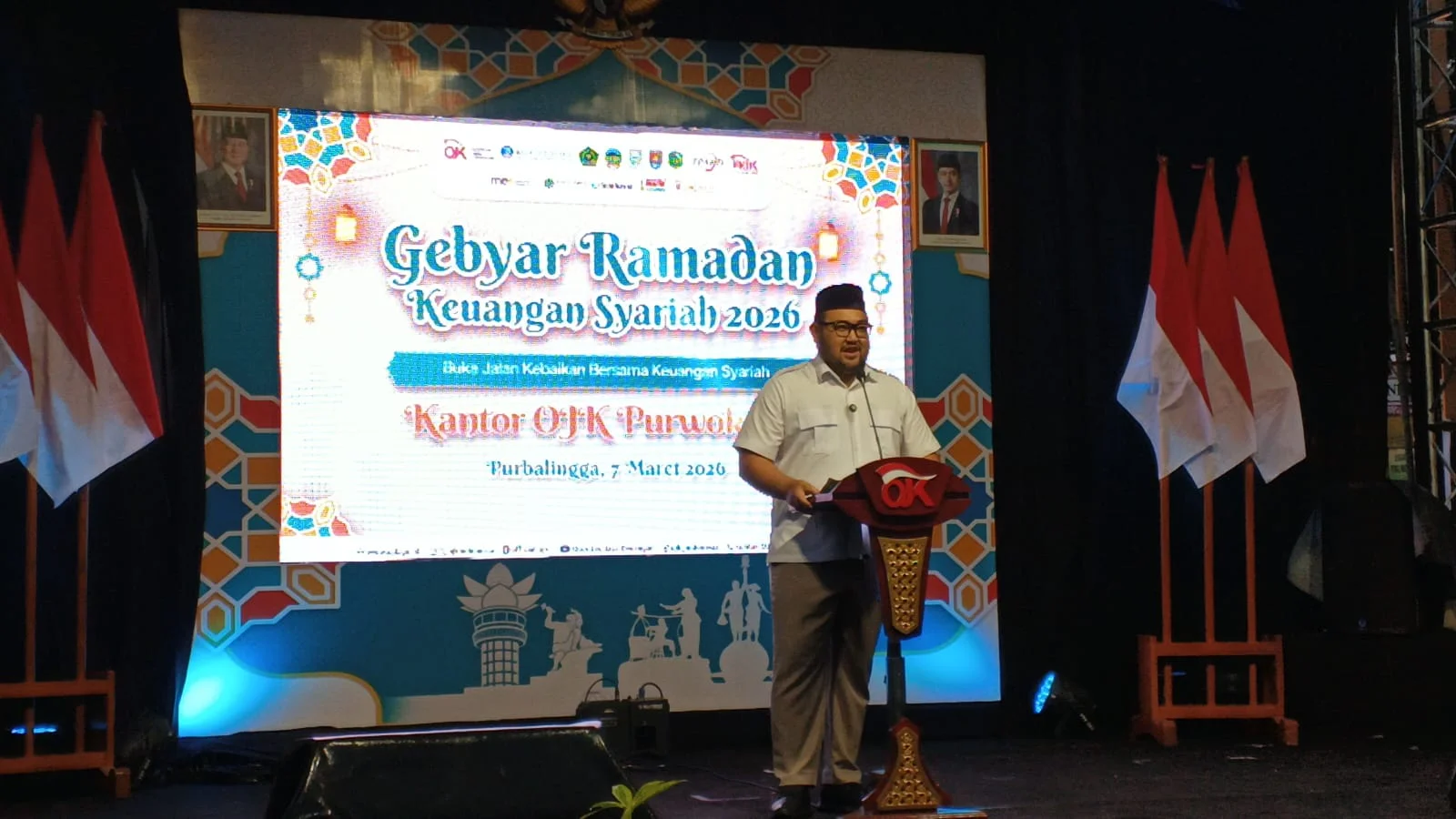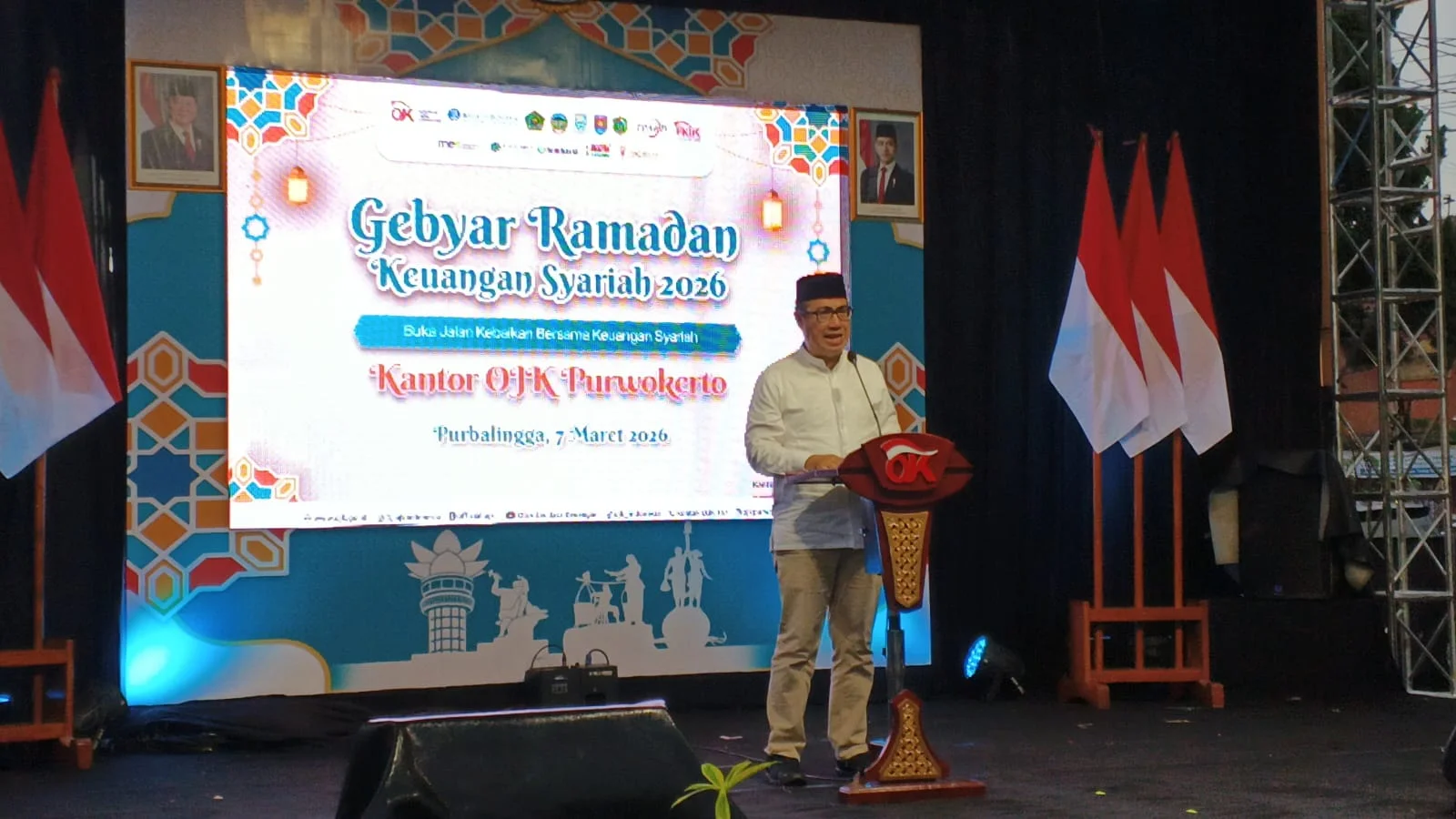 RRI.CO.ID, Purbalingga: Kantor Otoritas Jasa Keuangan (OJK) Purwokerto menggelar acara puncak Gebyar Ramadan Syariah (Gerak Syariah) Tahun 2026 di Taman Kota Usman Janatin, Kabupaten Purbalingga. Kegiatan yang mengusung tema “Membuka Jalan Kebaikan Bersama Keuangan Syariah” tersebut menjadi bagian dari kampanye nasional OJK untuk meningkatkan literasi dan inklusi keuangan syariah di masyarakat. (Foto: Dok. RRI/OJK Purwokerto)