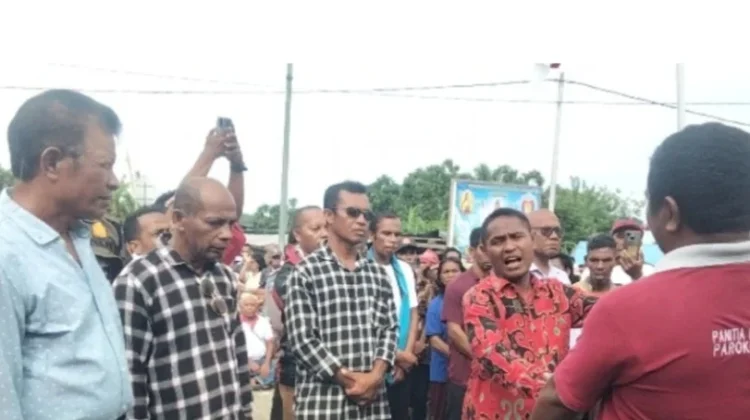 Ketua Dewan Stasi Arui Das, Feliks Takndare, menyampaikan rasa syukur dan kebanggaan umat atas kedatangan Arca Kristus Raja Semesta Alam di stasi mereka.