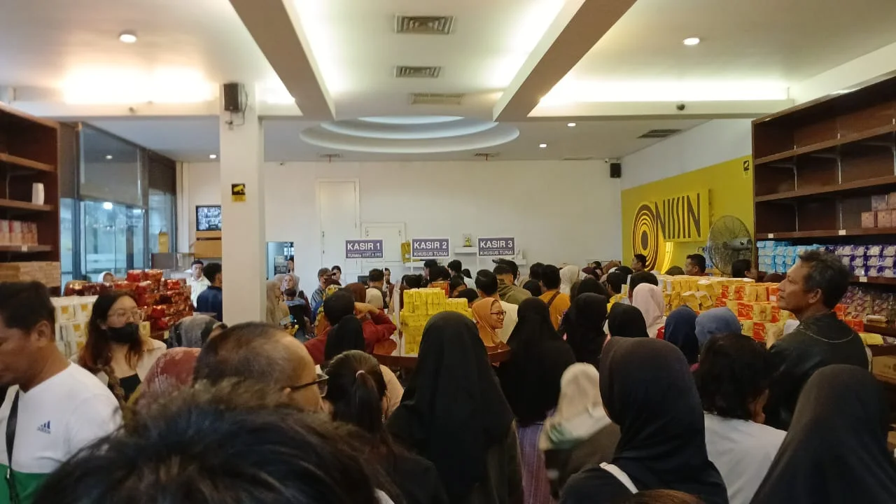 RRI.CO.ID, Semarang- Menjelang Lebaran 2026, antrean panjang calon pembeli terlihat di Toko Roti Nissin dan Museum Nissin Ungaran, Kabupaten Semarang Minggu, 1 Maret 2026. Masyarakat rela membeli roti untuk persiapan Lebaran dengan sabar, meski harus mengantre cukup lama.