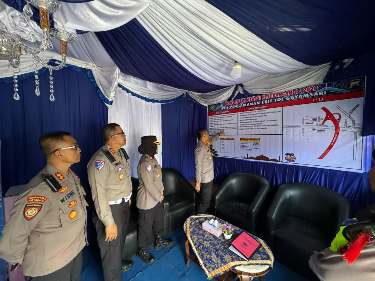 Kapolrestabes Semarang didampingi Pejabat Utama (PJU) Polrestabes Semarang. Kombes Pol M. Syahduddi meninjau secara langsung kondisi pos, kesiapan fasilitas pelayanan. Hingga kesiapsiagaan personel yang akan bertugas selama operasi berlangsung.