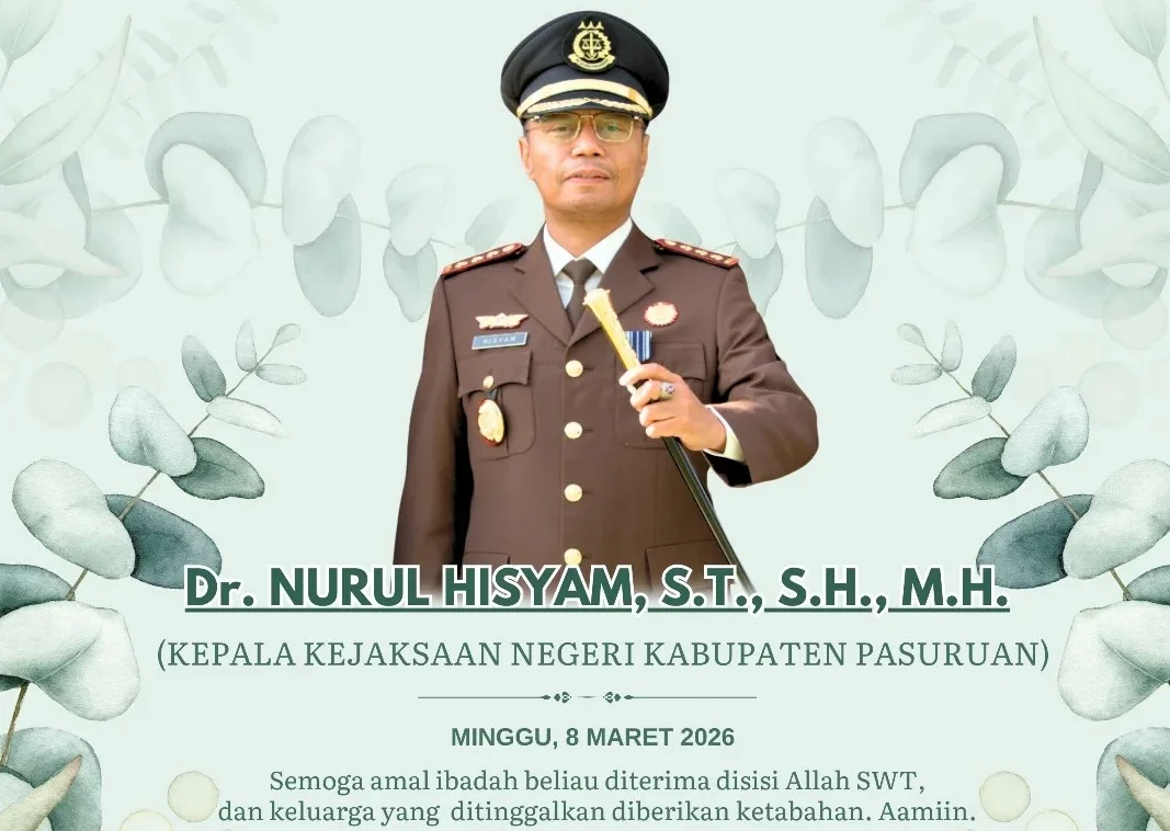 RRI.CO.ID, Sendawar – Mantan Kepala Kejaksaan Negeri (Kajari) Kutai Barat, Dr. Nurul Hisyam, meninggal dunia, pada Minggu, 8 Maret 2026. Almarhum saat ini menjabat sebagai Kepala Kejaksaan Negeri Kabupaten Pasuruan, Jawa Timur.