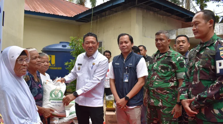 Bantuan yang diserahkan itu bersumber dari Badan Pangan Nasional bekerja sama dengan perum Bulog cabang Sibolga berupa beras dan minyak goreng periode bulan Februari – Maret 2026.