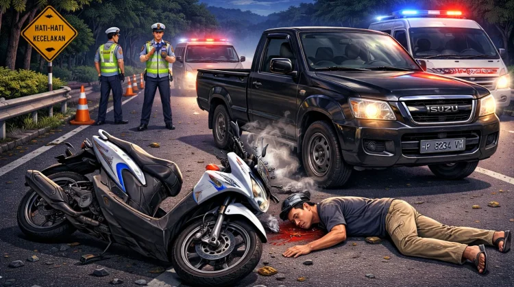 “Sepeda motor Honda Beat DK 3095 UBM datang dari arah utara dan hendak menyeberang ke arah selatan jalan. Pada saat bersamaan, datang kendaraan roda empat Isuzu Pick Up P 8234 VM dari arah barat menuju timur sehingga terjadi tabrakan antara bagian depan kiri mobil dengan bagian depan sepeda motor,” kata IPTU Yohana, Kamis 12 Maret 2026.