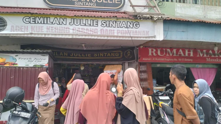 RRI.CO.ID, Sintang – Agen kue kering di Pasar Sungai Durian Sintang ramai pengunjung, warga memburu kue kering untuk persiapan lebaran Idul Fitri 1447 H meskipun harus berdesak-desakan memilih kue yang akan dibeli.