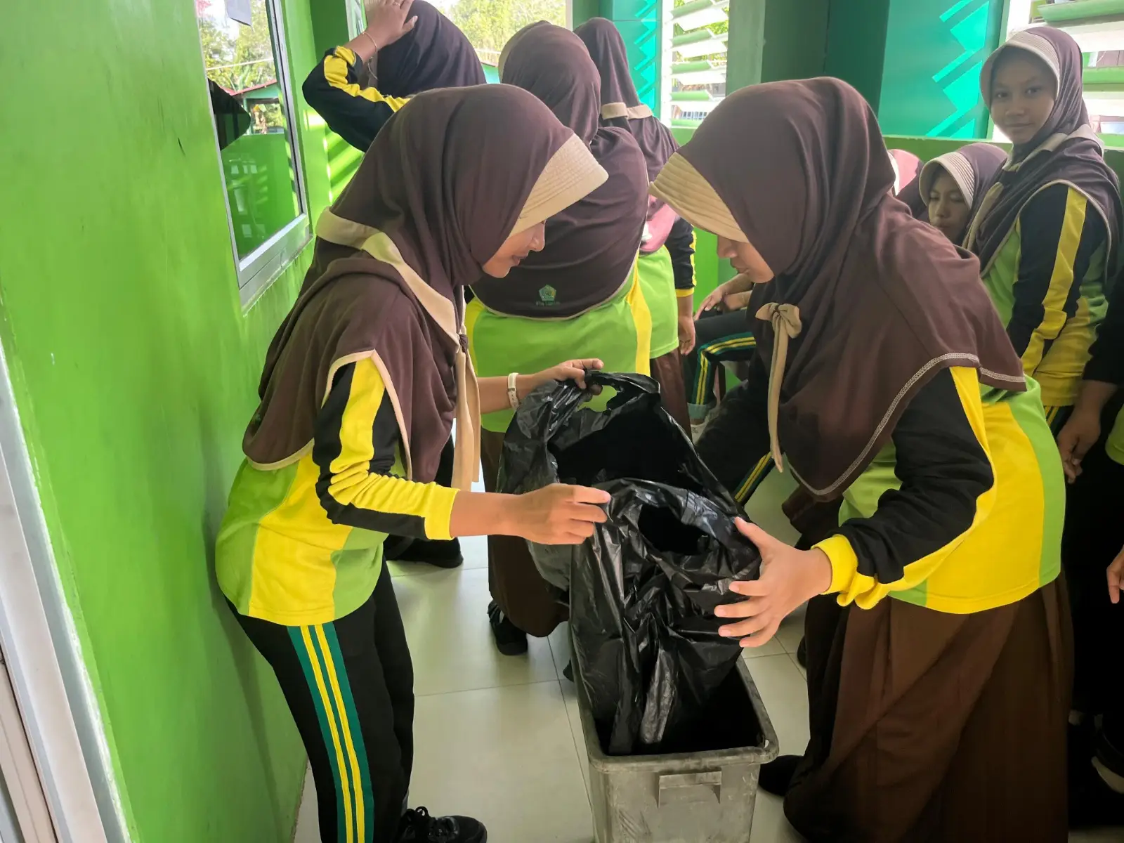 Seluruh warga madrasah, kepala madrasah, guru, tenaga kependidikan, dan peserta didik terlibat aktif dalam aksi bersih-bersih lingkungan. Area kegiatan meliputi ruang kelas, halaman madrasah, taman, selokan, hingga lingkungan sekitar madrasah.