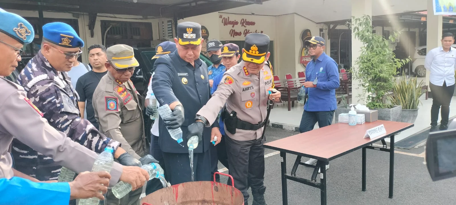 Diakhir kegiatan Anshar Karim dan Amry Siahaan beserta jajaran TNI Polri bersama-sama melakukan pemusnahkan Miras lokal jenis Cap Tikus berjumlah 170 liter yang disita selama bulan ramadan ini.