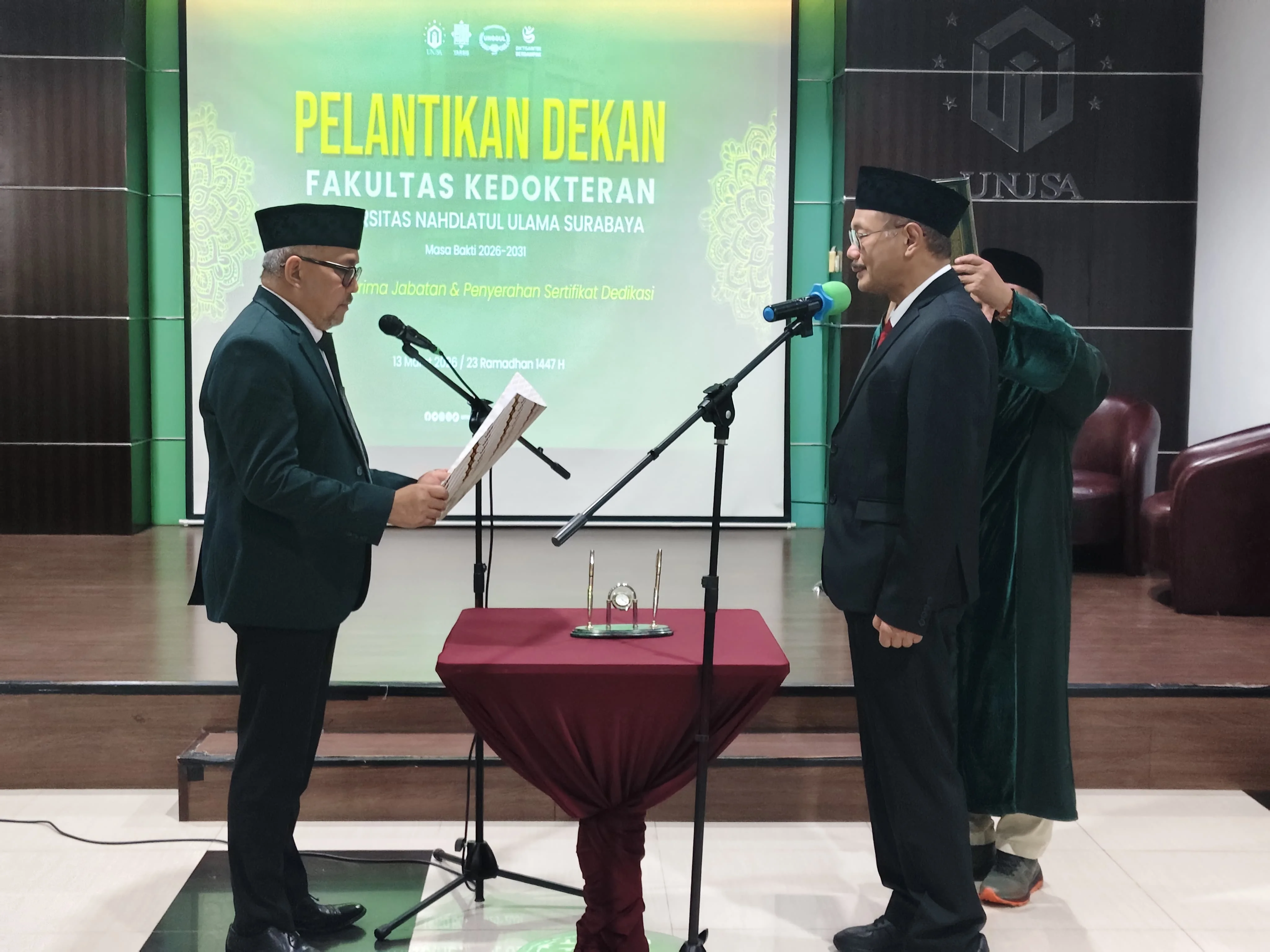 RRI.CO.ID, Surabaya - Universitas Nahdlatul Ulama Surabaya (Unusa) resmi melantik Dekan Fakultas Kedokteran Prof. Dr. dr. Budi Santoso, Jumat, 13 Maret 2026. Kolaborasi menjadi misi yang diemban, ditengah FK Perguruan Tinggi lain.