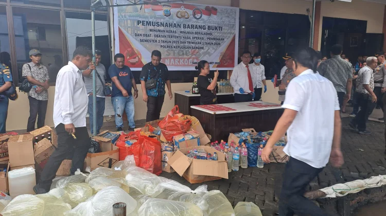 RRI.CO.ID,Tahuna - Polres Kepulauan Sangihe melaksanakan pemusnahan barang bukti minuman keras minuman beralkohol, dan obat - obatan tertentu,Kamis 12 Maret 2026.