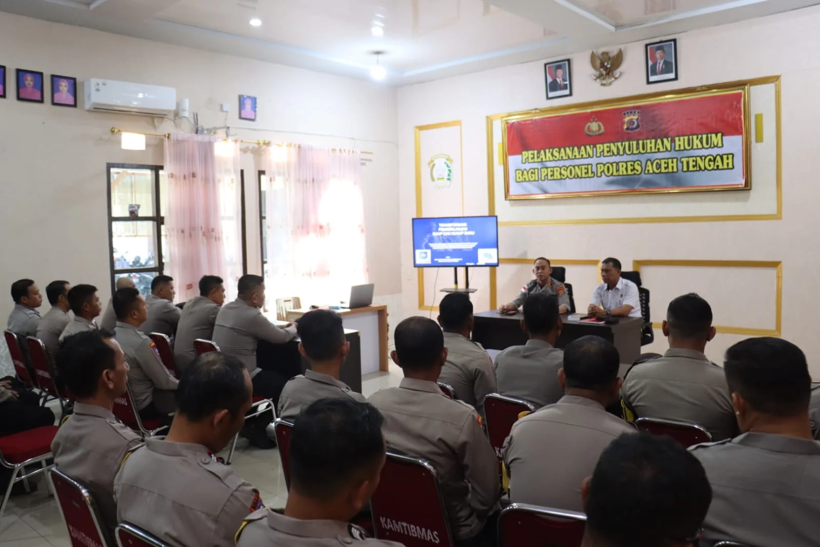 Kegiatan yang dimulai sekitar pukul 09.00 WIB itu diikuti oleh 55 personel Polres Aceh Tengah, terdiri dari personel Seksi Hukum serta para Bhabinkamtibmas jajaran Polres Aceh Tengah.