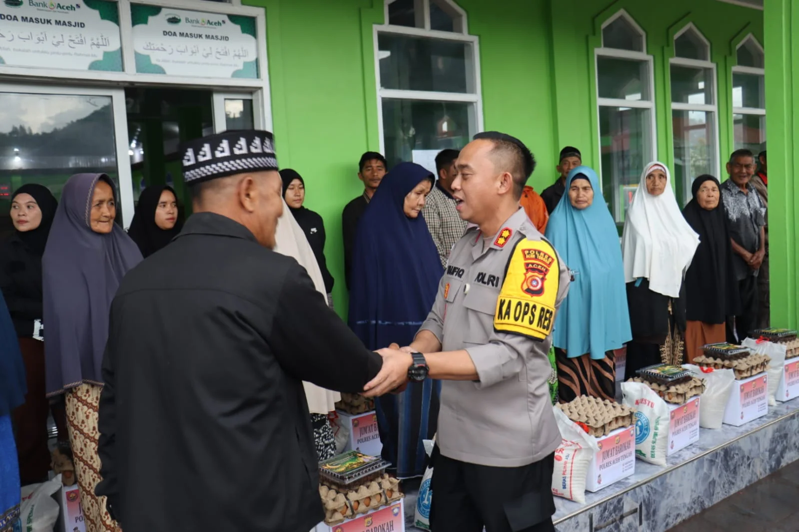 Kegiatan yang berlangsung sekitar pukul 16.30 WIB tersebut dipusatkan di Masjid Al-Latifah Kampung Kayu Kul. Kapolres Aceh Tengah AKBP Muhamad Taufiq, S.I.K., M.H., hadir langsung bersama para Pejabat Utama Polres Aceh Tengah, Kapolsek Pegasing, serta sejumlah personel untuk menyerahkan bantuan kepada masyarakat.