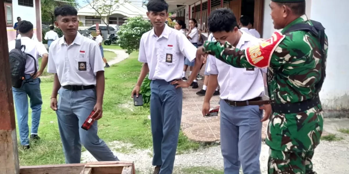 Beberapa Siswa meluangkan waktu jam istirahat untuk bergabung dalam sesi berbincang. Babinsa membahas berbagai topik mulai dari pentingnya menjaga keutuhan NKRI, peran pemuda dalam menghadapi tantangan zaman, hingga cara menjaga keharmonisan antarwarga masyarakat.