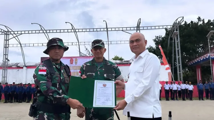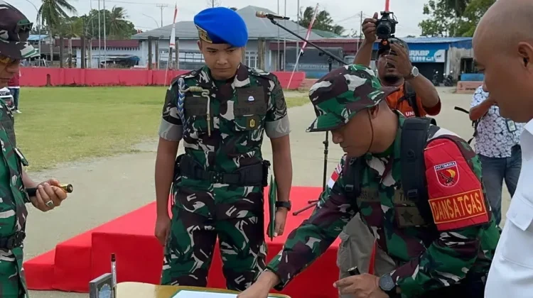 RRI.CO.ID, Langgur – Upacara Penutupan Tentara Manunggal Membangun Desa (TMMD) Ke-127 TA 2026 Kodim 1503/Tual dilaksanakan pada pukul 10.00 WIT di Lapangan Yos Sudarso Dobo, Jalan Ali Moertopo, Kelurahan Siwalima, Kecamatan Pulau-pulau Aru, Kabupaten Kepulauan Aru. Upacara penutupan dipimpin langsung oleh Pangdam XV/Pattimura Mayjen TNI Putranto Gatot Sri Handoyo, S.Sos., M.M. yang secara resmi menutup rangkaian kegiatan TMMD ke-127 yang telah dilaksanakan oleh Kodim 1503/Tual bersama pemerintah daerah dan masyarakat. (Foto: Humas Kodim 1503/Tual)