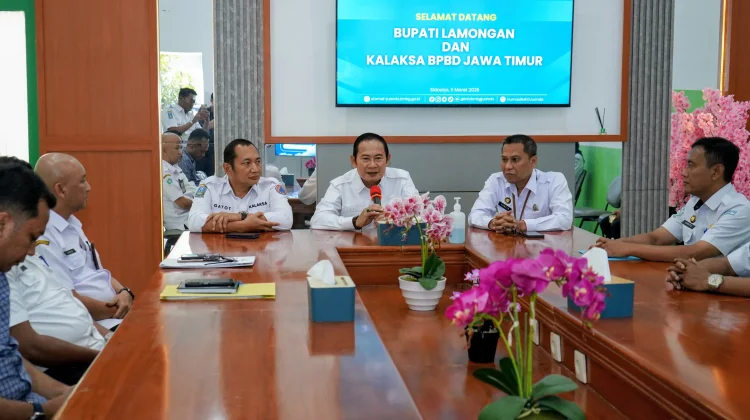 Bupati Lamongan Yuhronur Efendi memaparkan kondisi banjir yang masih terjadi di wilayah Lamongan sekaligus membahas langkah-langkah konkret penanganannya. Menurut Pak Yes sapaan akrabnya, banjir di Kabupaten Lamongan telah berlangsung sekitar empat bulan dan berdampak pada 44 desa yang tersebar di lima kecamatan.