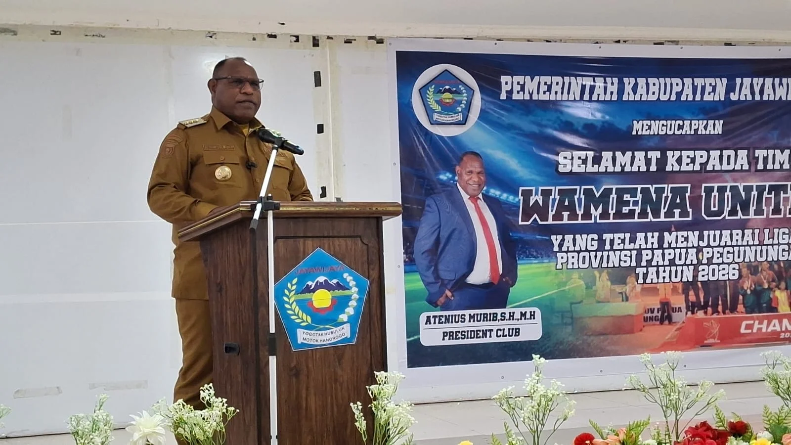 RRI.CO.ID, Wamena - Ketua PSSI Papua Pegunungan, Atenius Murip, memberikan apresiasi kepada seluruh panitia penyelenggara ataupun simpatisan lainnya, atas suksesnya penyelenggaraan Liga 4 zona Papua Pegunungan. Hal ini disampaikan Atenius Murip, disela penyerahan piala bergilir milik Wamena United, yang diserahkan kepada Pemerintah Kabupaten Jayawijaya, yang berlansgung di Aula Sasana Wio Kantor Bupati, Senin (9/3/2026).