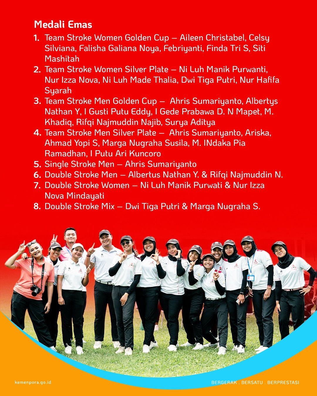 Dalam kejuaraan yang diikuti lebih dari 15 negara ini, atlet Merah Putih tampil perkasa, menguasai nomor beregu dan perorangan, baik putra maupun putri, termasuk mengamankan gelar di kategori Gold Cup dan Silver Plate.