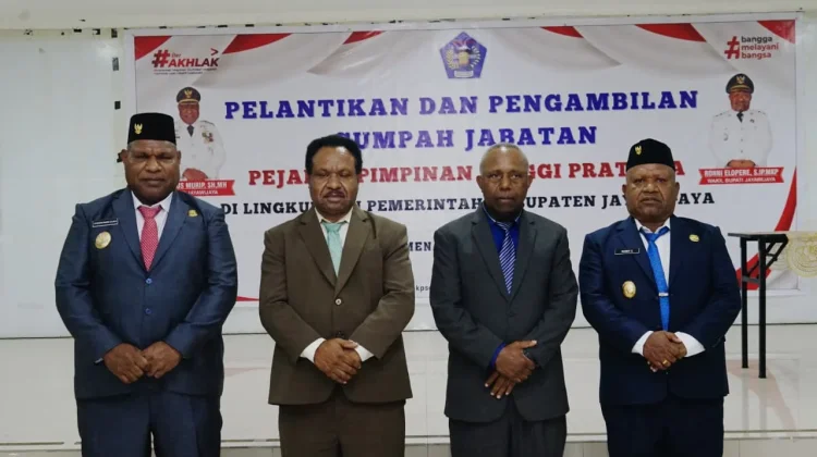 RRI.CO.ID, Wamena – Bupati Jayawijaya, Atenius Murip, melantik dua Pejabat Pimpinan Tinggi Pratama secara definitif di lingkungan Pemerintah Kabupaten Jayawijaya. Pelantikan yang dihadiri sejumlah pejabat daerah serta ASN, berlangsung di Sasana Wio Lantai I Kantor Bupati Jayawijaya, Rabu (4/3/2026).